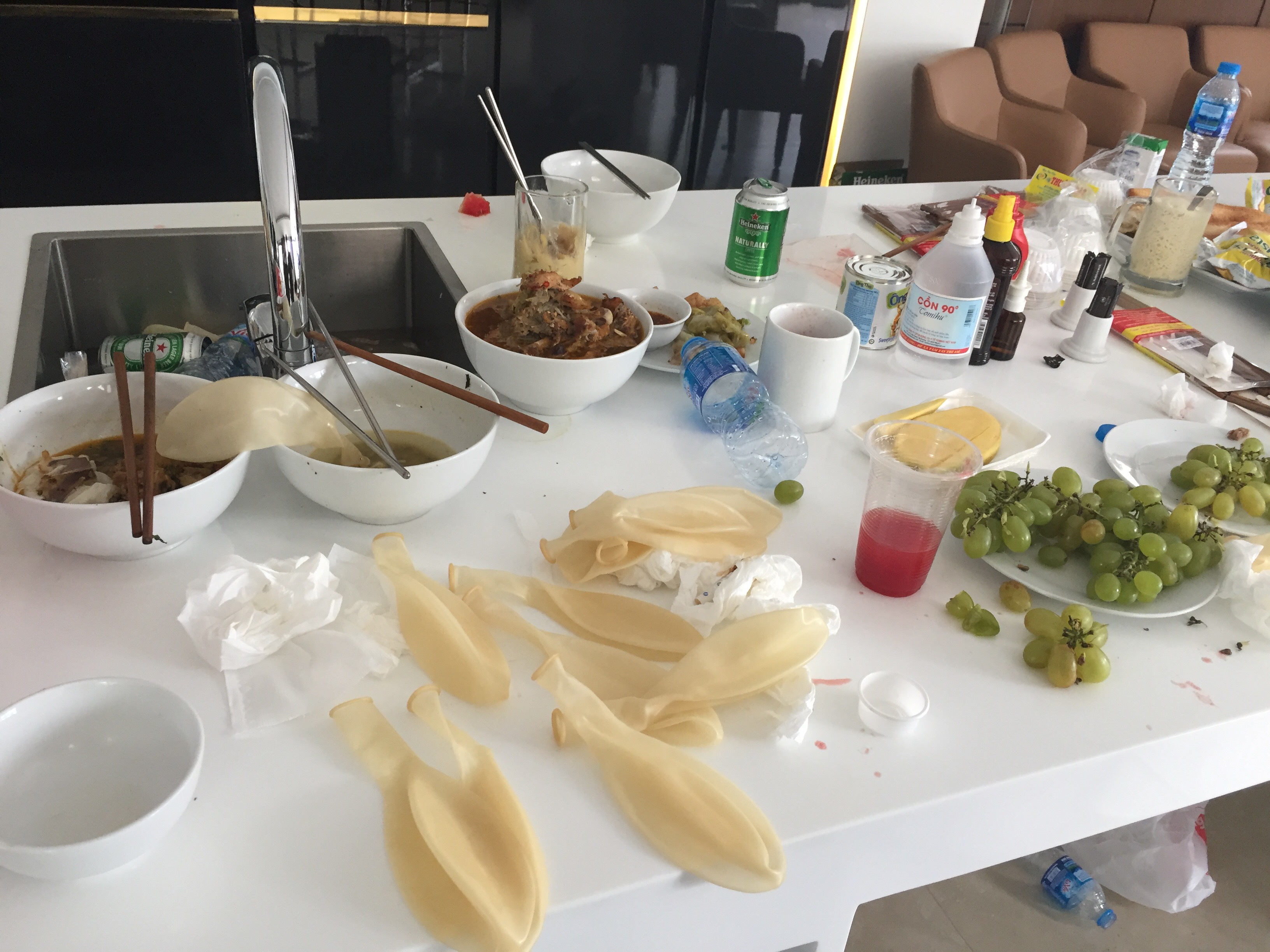 Khuya 2/6, nhóm đối tượng thuê căn hộ cao cấp tại khu K4 - Ocean Villas với giá 25 triệu đồng/ngày đêm. Đồng thời mua cần sa, ma túy tổng hợp (ketamine), shisa, bóng cười cùng nhiều đồ ăn thức uống trị giá hàng chục triệu đồng để lao vào cuộc ăn chơi xuyên đêm.