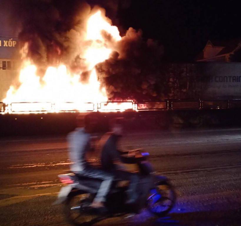 Theo đó, vào thời gian trên xe container BKS 72R -01670 đang lưu thông theo hướng Nam - Bắc, khi tới gần Cầu Yên Lý thuộc xã Diễn Yên, thì bất ngờ phát ra tiếng nổ lớn, sau đó xe bốc cháy dữ dội ở phần đầu.
