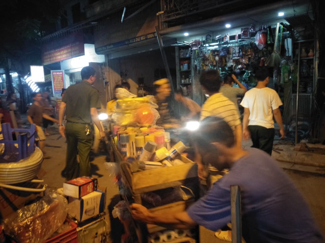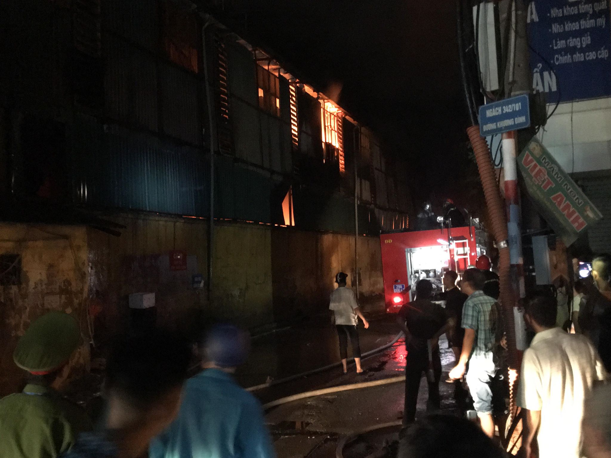 Lúc 19h45, đám cháy lan rộng sang nhà dân ở mặt phố Hạ Đình. Mọi người hô nhau chuyển đồ đạc trong nhà ra ngoài. Lực lượng công an cũng hô hào người dân xung quanh vào giúp chuyển đồ đạc và cảnh báo để ý đồ đạc của mình.