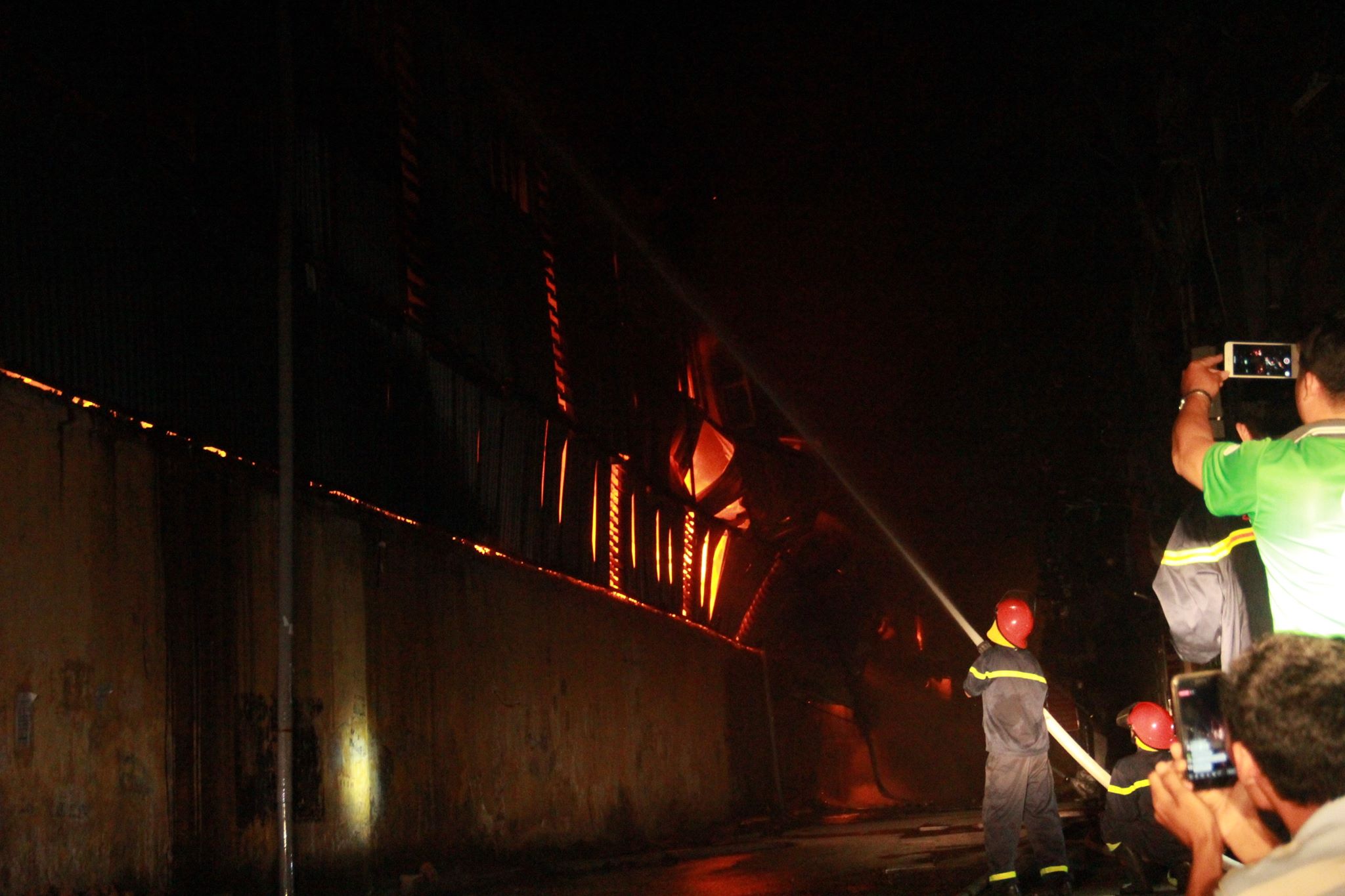 Tại hiện trường, hàng chục xe cứu hoả cùng rất đông lực lượng PCCC&CHCN đang ra sức khống chế hoả hoạn. Giao thông qua khu vực được phong toả phục vụ công tác chữa cháy, người dân hoảng loạn do khói bụi dày đặc.