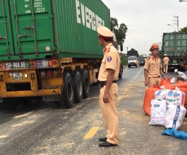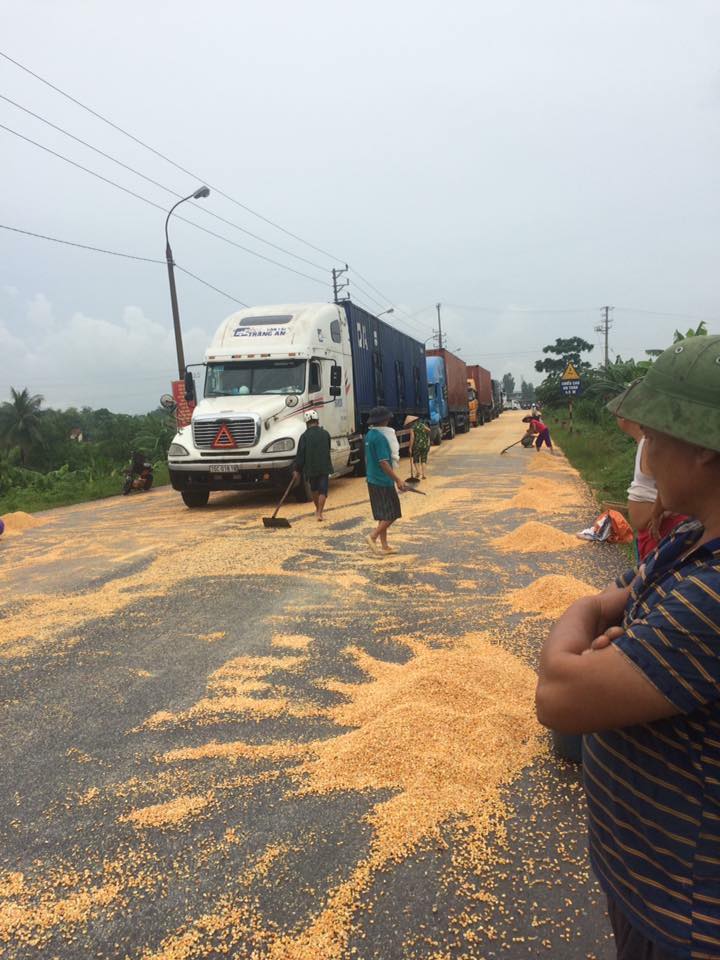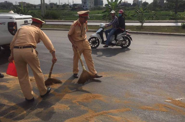 Sau khoảng 1 giờ đồng hồ thì số ngô rơi vãi trên đường đã được thu gom trao lại cho tài xế container. Riêng lực lượng chức năng vẫn tiếp tục công việc điều tiết để giải phóng lượng phương tiện bị ùn tắc.