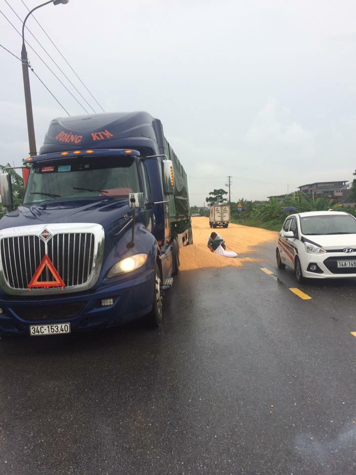 Vào 10h sáng nay, ngày 17/8, một sự cố đã xảy ra tại khu vực cầu Đức Chính, xã Đông Triều (Quảng Ninh). Theo đó, khoảng 10 tấn ngô được chở bởi một container chuyển hướng Uông Bí - Hải Dương khi di chuyển đến Km 54 thuộc QL 18 thì bất ngờ cửa xe bung ra khiến số ngô trên thùng xe rơi vãi khắp đường.