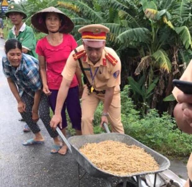 Ngay khi nhận được tin báo, lực lượng chức năng đã nhanh chóng có mặt tại hiện trường để tiến hành thu dọn và phân luồng giao thông. Bên cạnh những hình ảnh hôi ngô được cư dân mạng ghi lại thì những người dân tại đây cũng đã chứng kiến những hành động đẹp từ cảnh sát: Không chỉ huy động người dân hỗ trợ mà còn trực tiếp thu gom để giúp đỡ tài xế.
