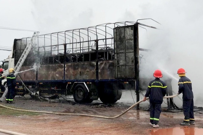 Dẫn nguồn tin trên Zing.vn, hàng chục cảnh sát chữa cháy cùng xe cứu hỏa được điều đến ngăn được ngọn lửa không lan sang đầu xe tải.