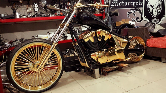 Cận cảnh chiếc xe mô tô Phúc XO dát vàng