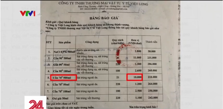 Cụ thể, theo phóng sự điều tra của PV VTV24 trong chương trình Chuyển động 24h, rất nhiều nhà thuốc trên địa bàn TP Hà Nội đã và đang bày bán công khai nhiều chế phẩm sát trùng vi phạm của công ty Việt Long - một công ty vừa mới bị lực lượng chức năng xử phạt vì sản xuất cồn, nước muối sinh lý độc hại.