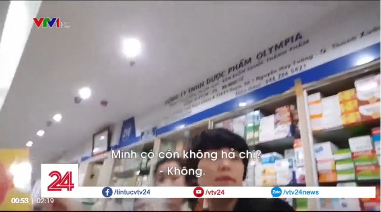 Phóng sự “vạch trần” sự thật nhiều nhà thuốc vẫn bán sản phẩm sát trùng độc hại của công ty Việt Long. Nguồn: VTV.