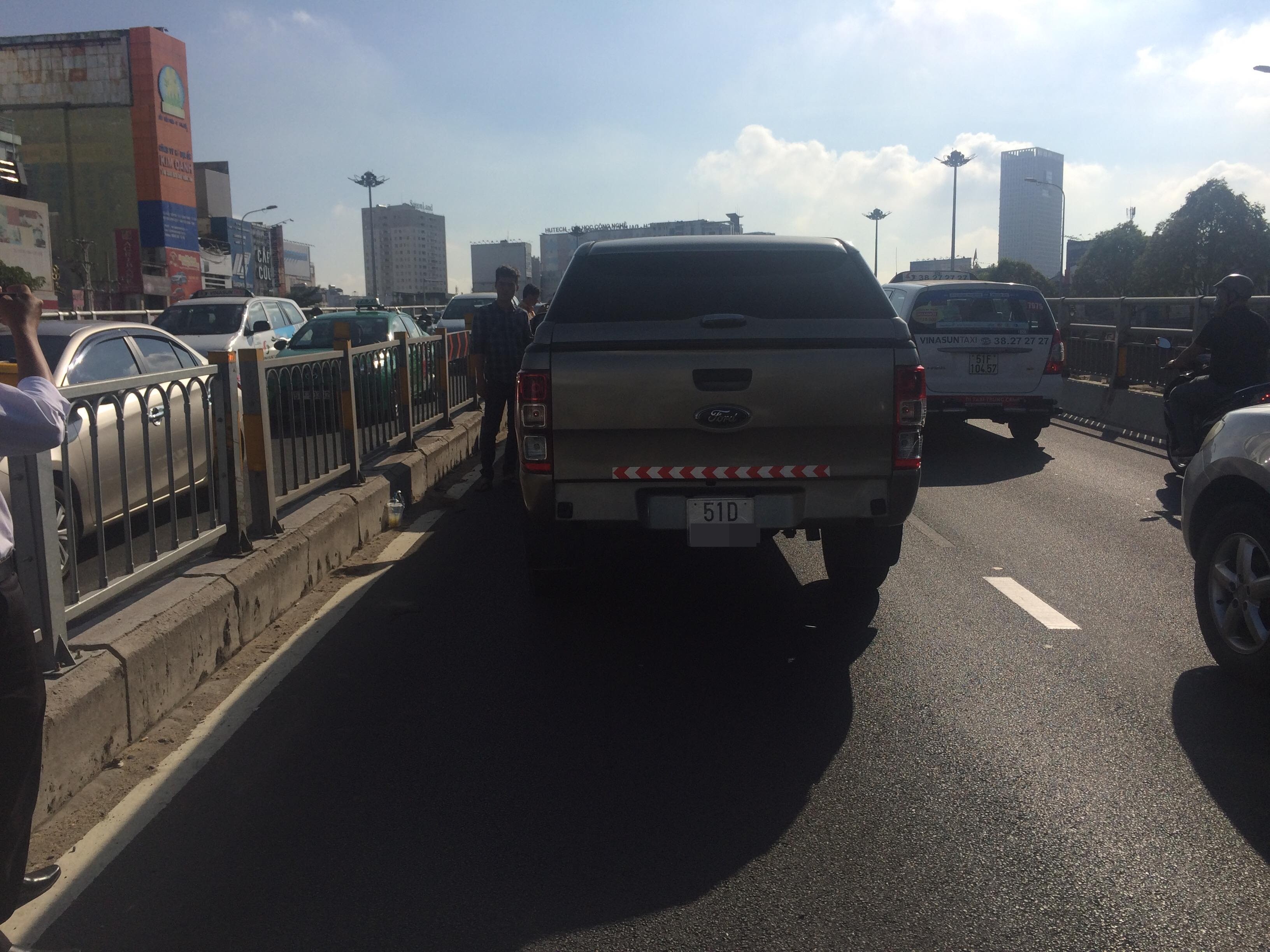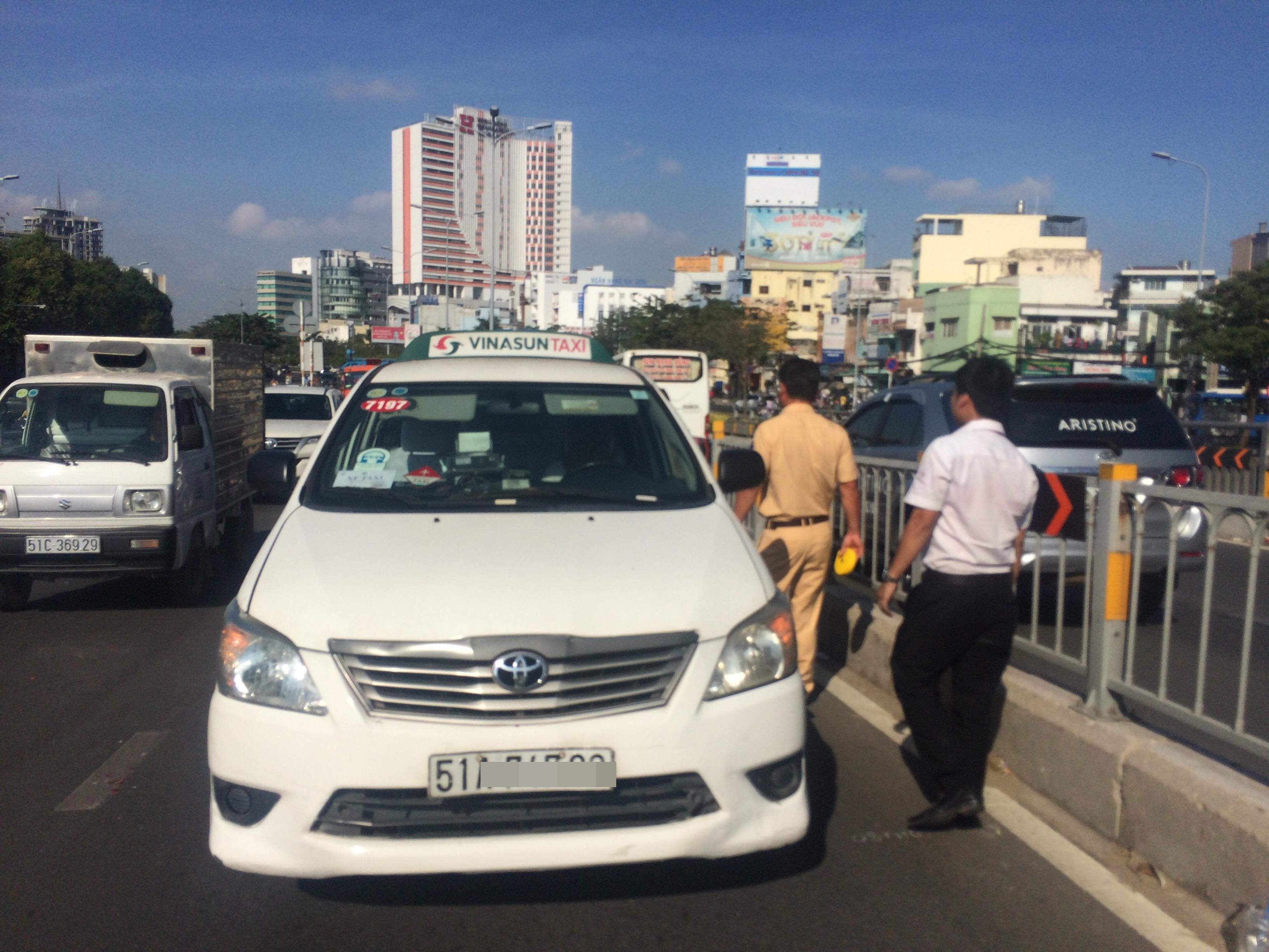Khoảng 8h cùng ngày, tài xế (25 tuổi) điều khiển xe taxi hãng Vinasun mang BKS : 51A-747.. chở theo cặp vợ chồng cùng con nhỏ lưu thông trên đường Điện Biên Phủ hướng từ quận 1 về cầu Sài Gòn.
