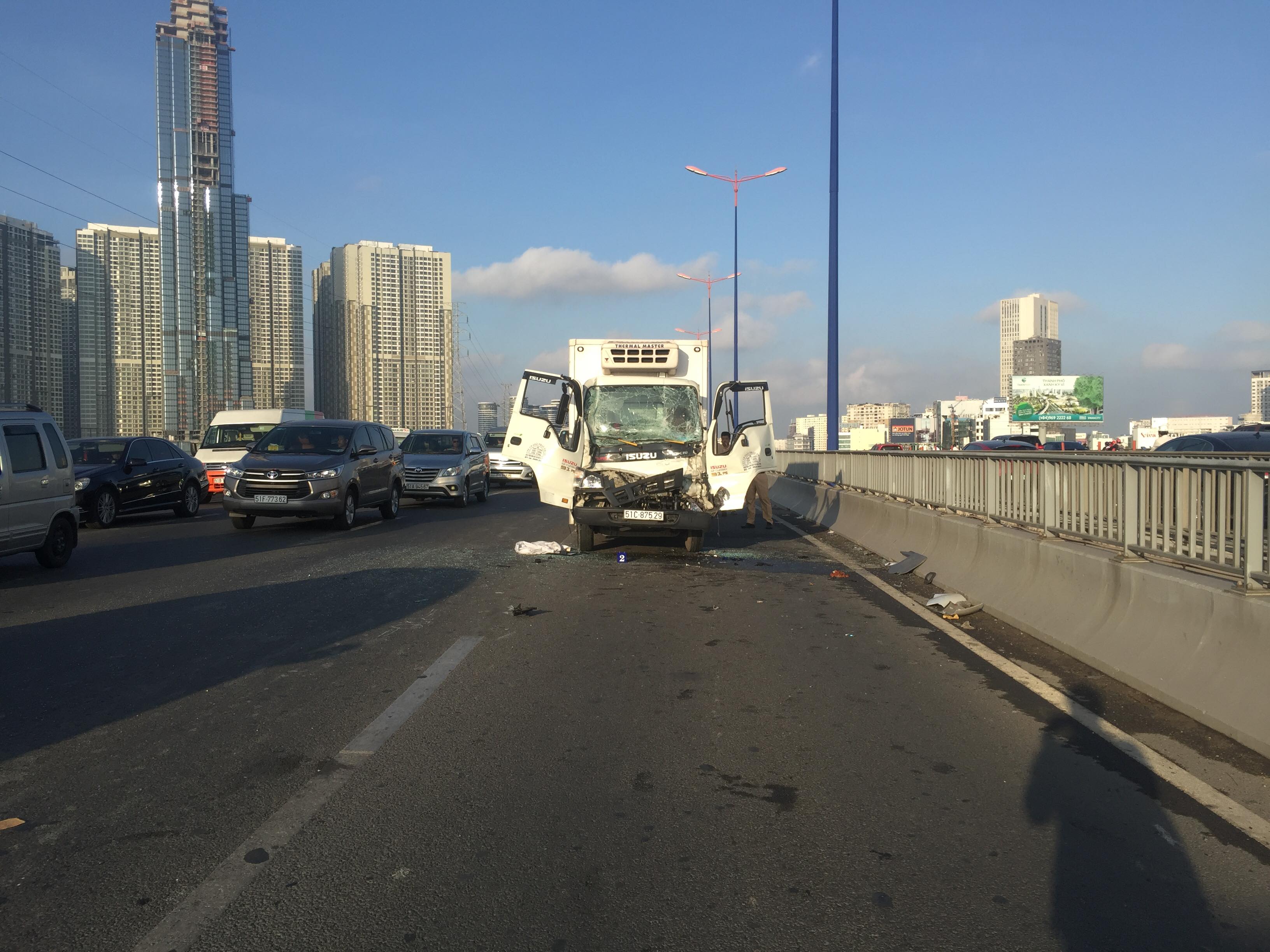 Trước đó, khoảng 5h sáng 6/3, xe tải đông lạnh mang BKS 51C - 875… lưu thông qua cầu Sài Gòn hướng từ quận Bình Thạnh về quận 2.