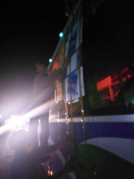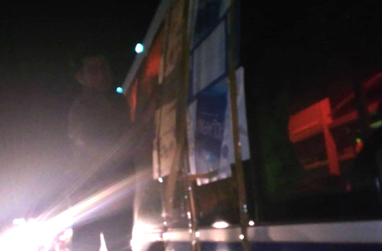 Một xe khách bị ném bể kính tại cầu Bà Muồng trên đường tránh BOT Cai Lậy, Tiền Giang.
