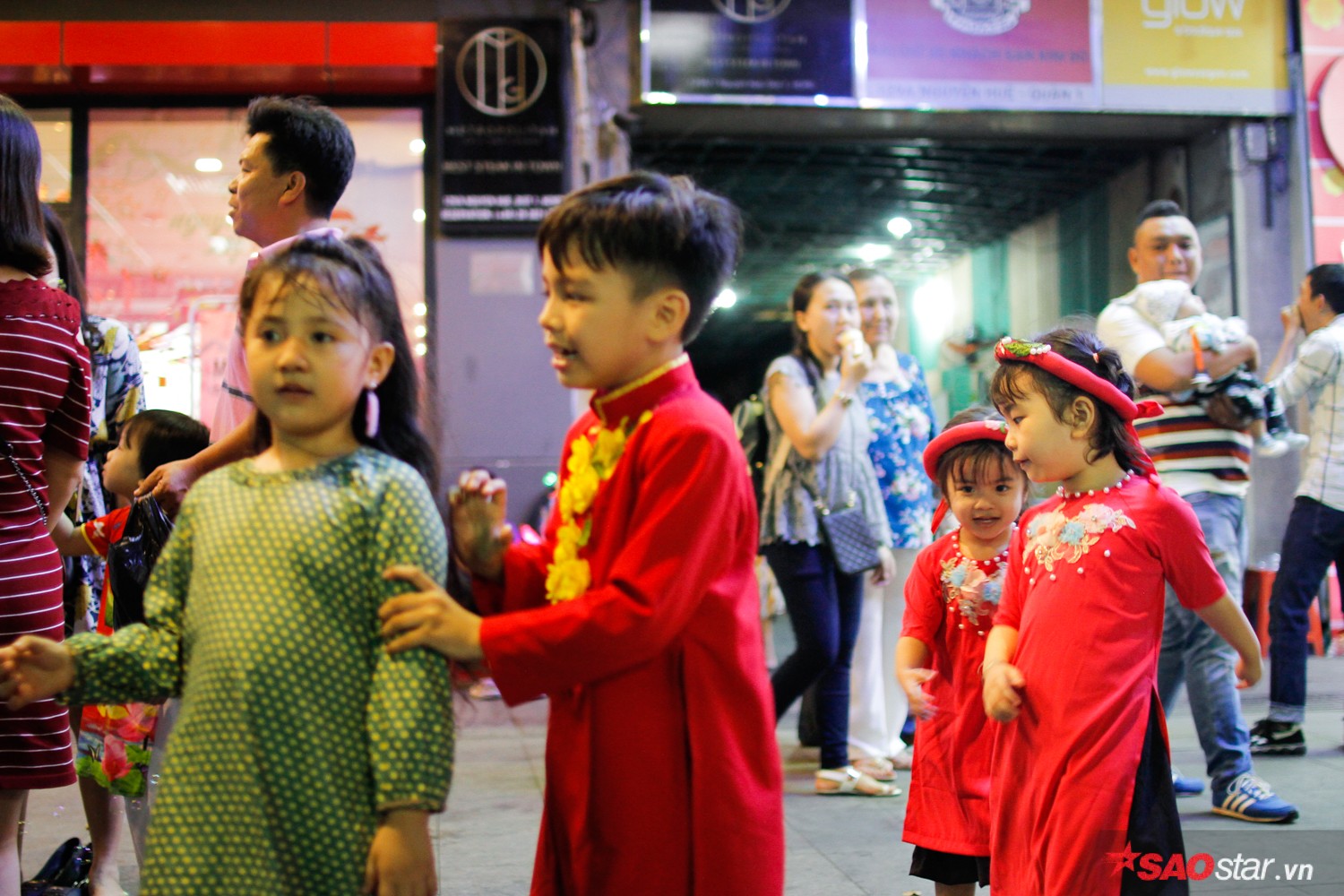 Nhiều gia đình đưa con em đến đây để tham quan chụp ảnh. Hình ảnh các cháu nhỏ xúng xính trong bộ áo dài đỏ làm ấm lòng người.