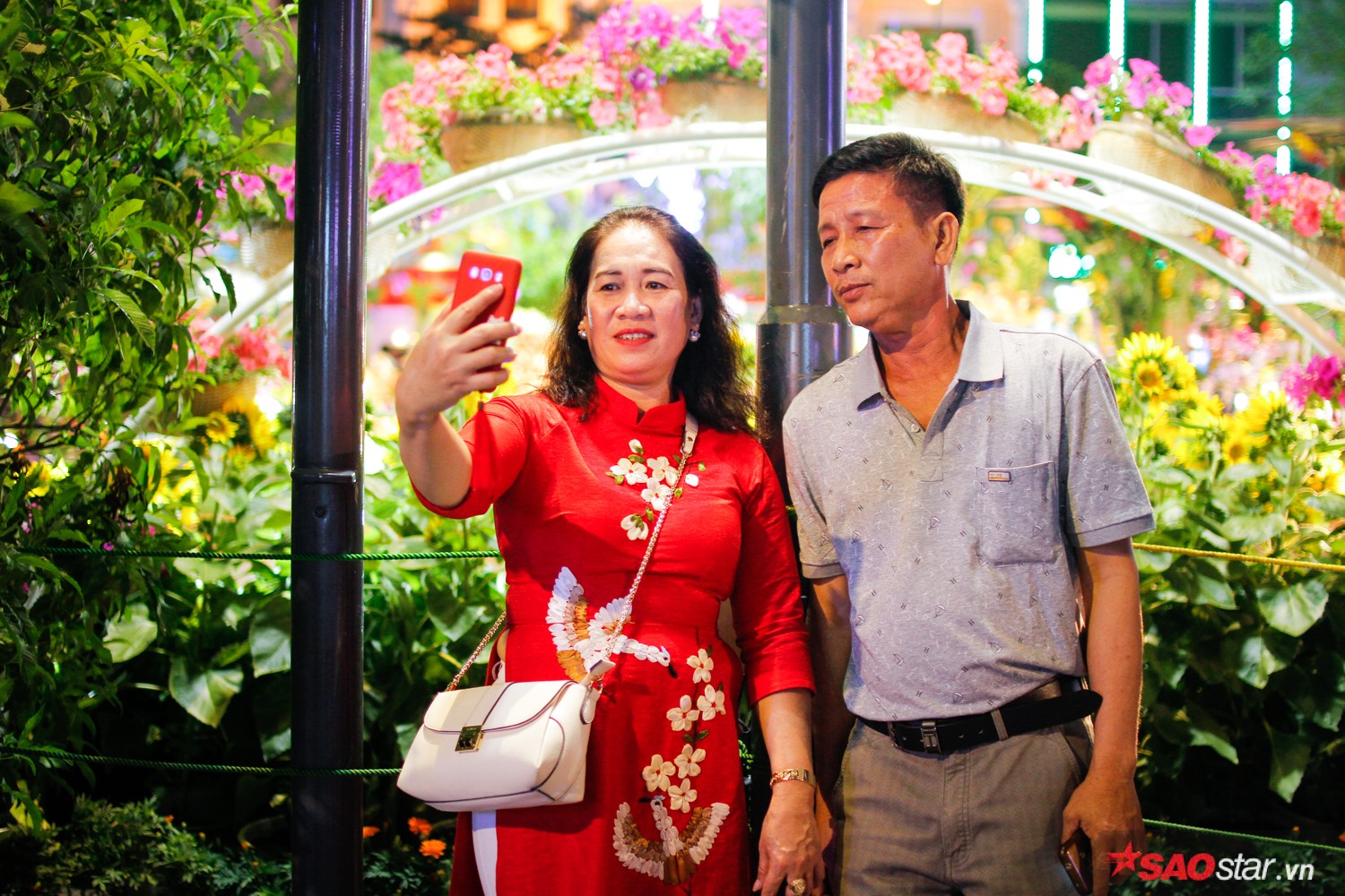 Người dân vui vẻ chụp ảnh lưu niệm, ngắm hoa trong không khí nhộn nhịp.