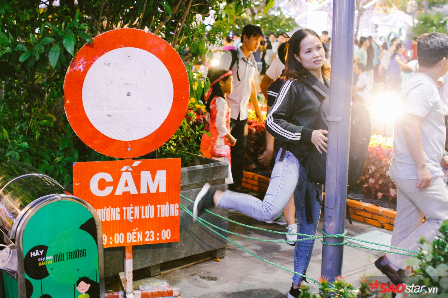 Một số người dân leo qua hàng rào bảo vệ do sốt ruột muốn ngắm đường hoa sớm