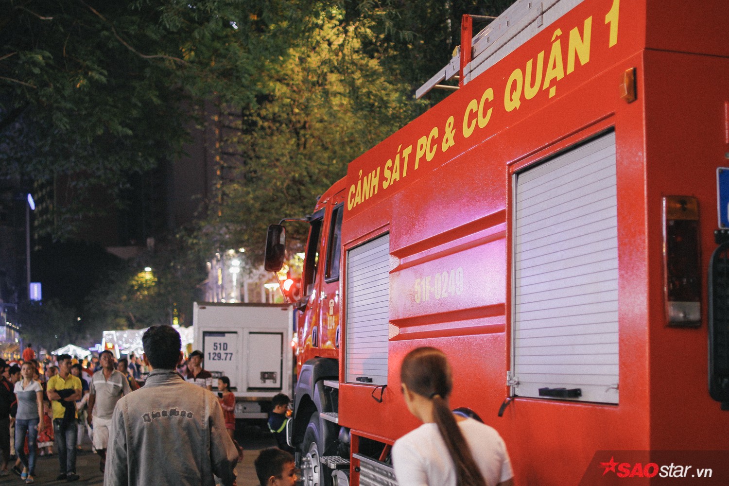 Xe cứu hỏa túc trực ở các con đường xung quanh nhằm đề phòng bất trắc.