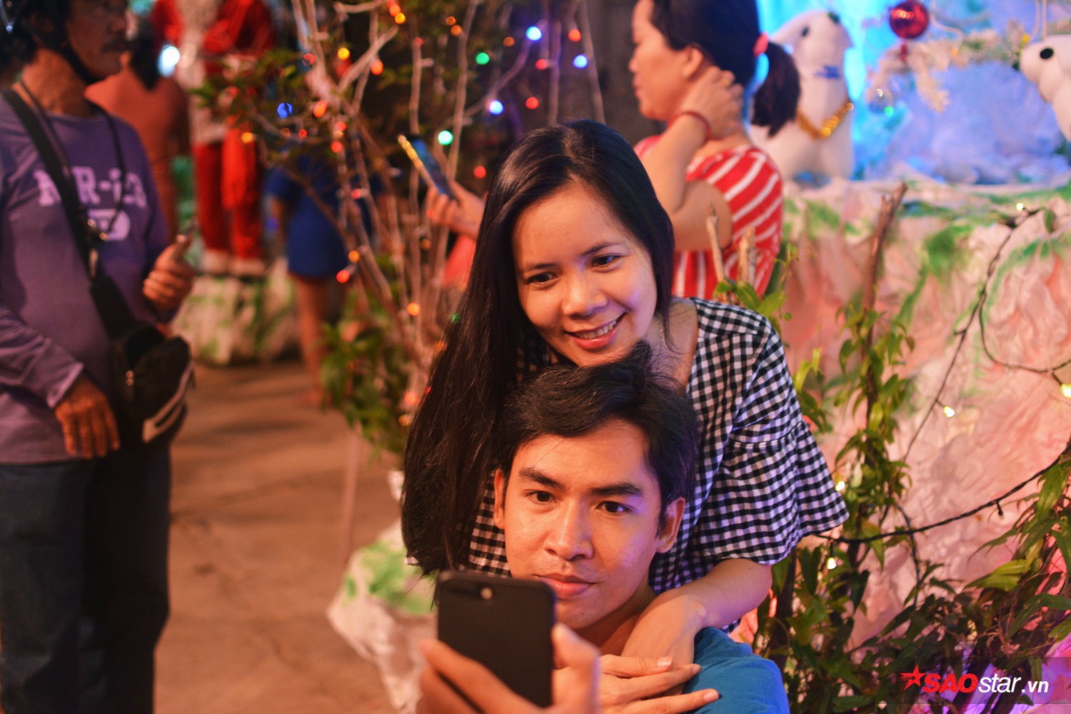 Các cặp đôi thích thú ghi lại kỷ niệm Giáng sinh này.
