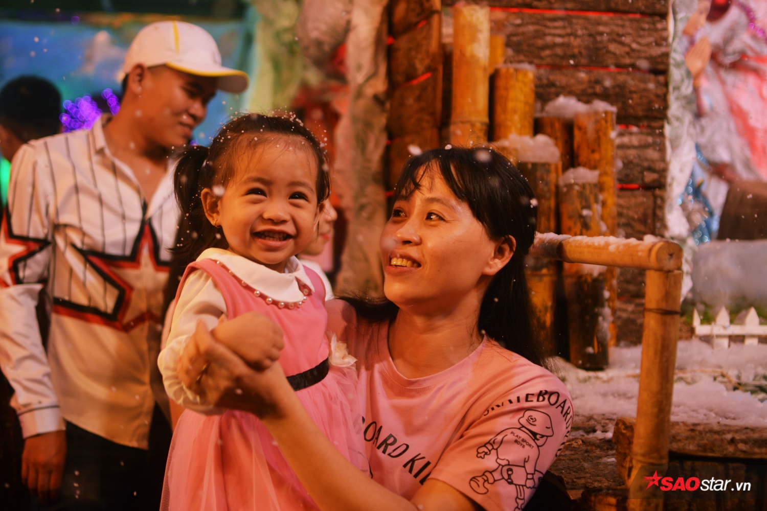 Bên cạnh cách bày trí bắt mắt, mùa Giáng sinh năm nay, xóm đạo Phạm Thế Hiển khiến nhiều người trầm trồ thích thú bởi “cơn mưa tuyết” có 1-0-2 giữa nhiệt độ lên tới 30 độ của Sài Gòn. Được biết, đây là ý tưởng của một hộ gia đình trong xóm, mô phỏng tuyết rơi bằng cách dùng một máy phun bọt xà phòng phun từ trên cao xuống.