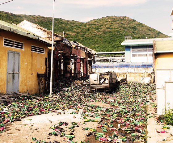 Qua quan sát, địa điểm vụ cháy xảy ra gần kho chứa các thùng thuốc xịt muỗi, đám cháy lớn đã làm các chai thuốc này phát nổ dữ dội.