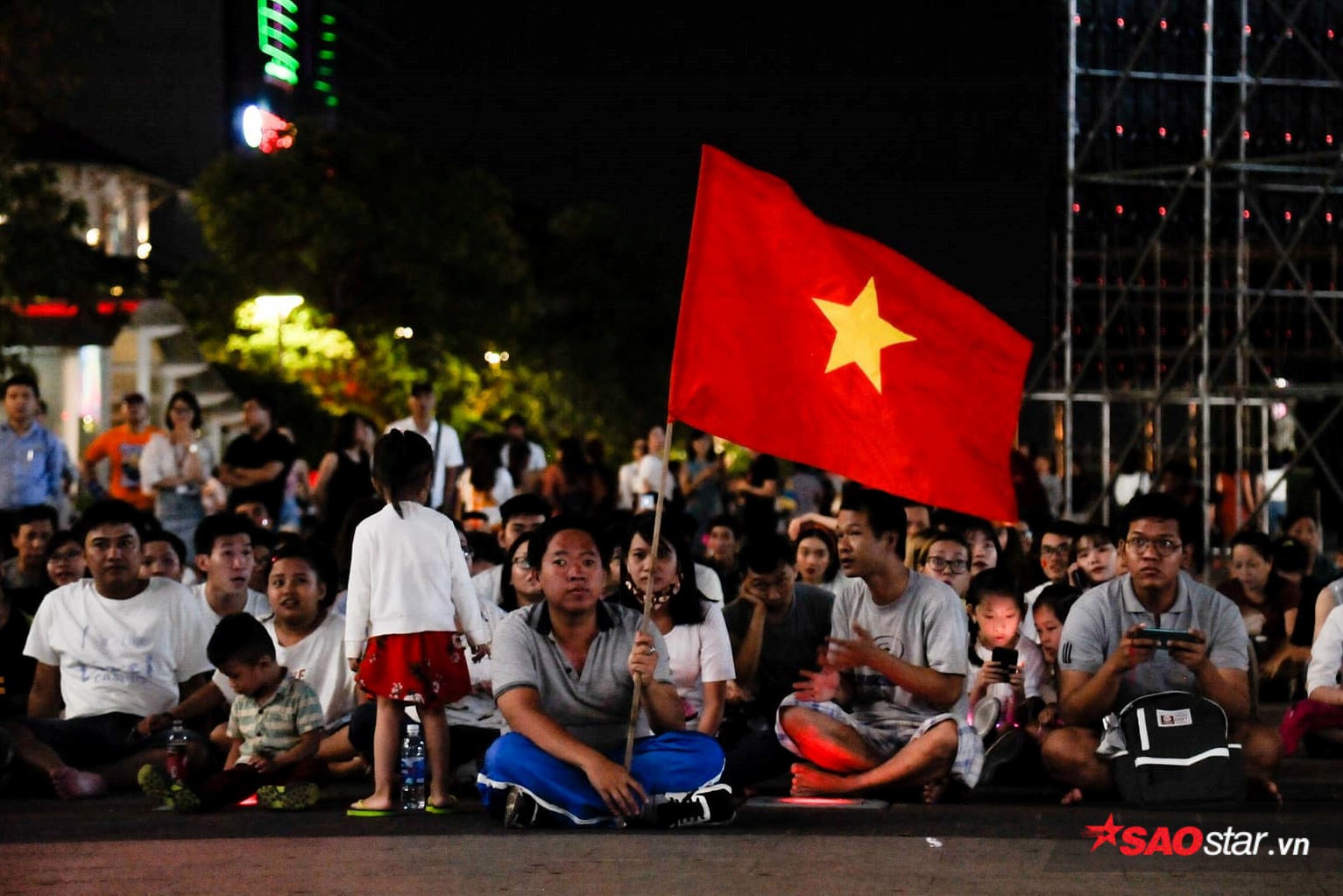 Hàng trăm cổ động viên đã có trước màn ảnh rộng tại phố đi bộ Nguyễn Huệ (TP.HCM) để cổ vũ đội tuyển Việt Nam.