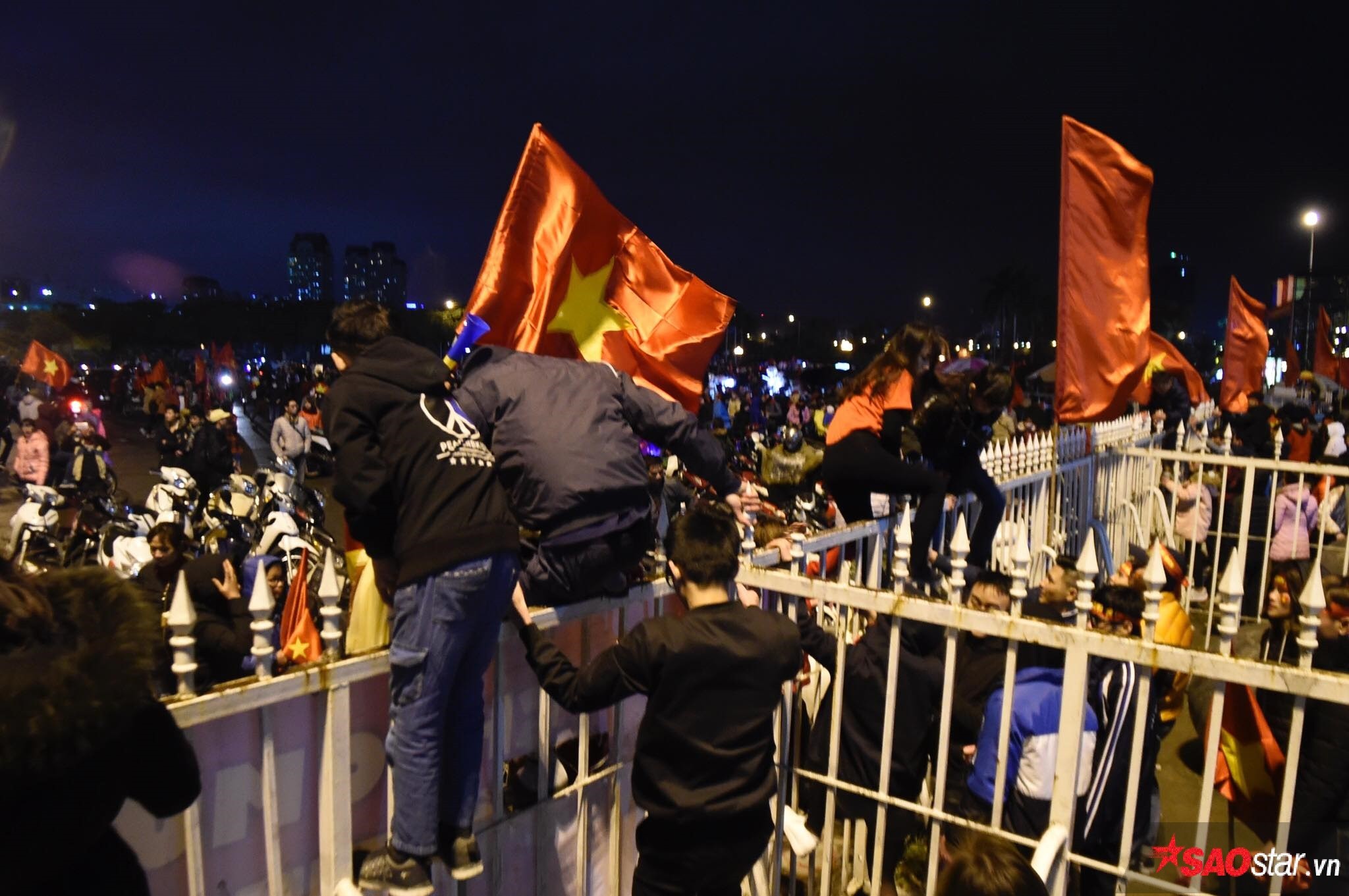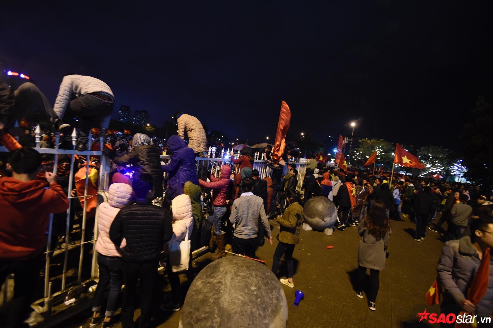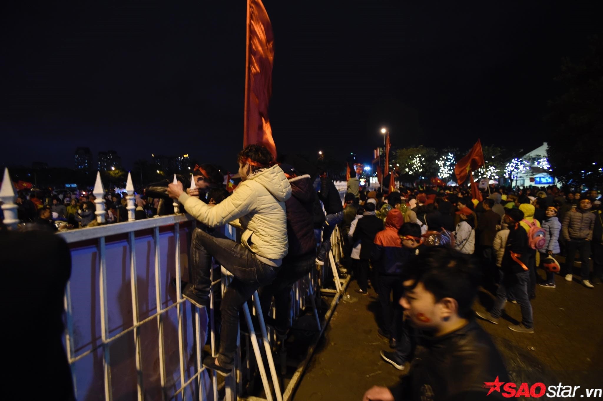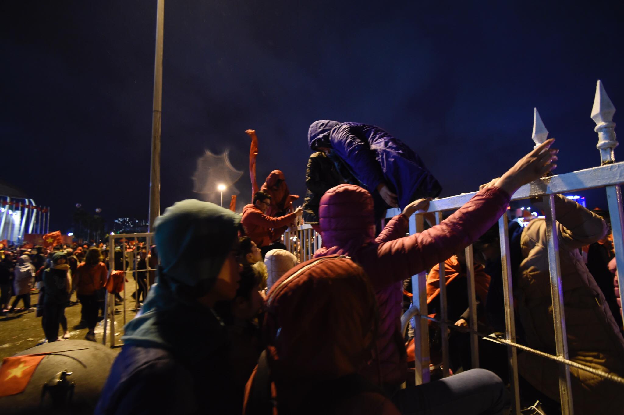 Vân còn rất nhiều cổ động viên còn ở bên trong khuôn viên sân vận động Mỹ Đình dù đã khá khuya.