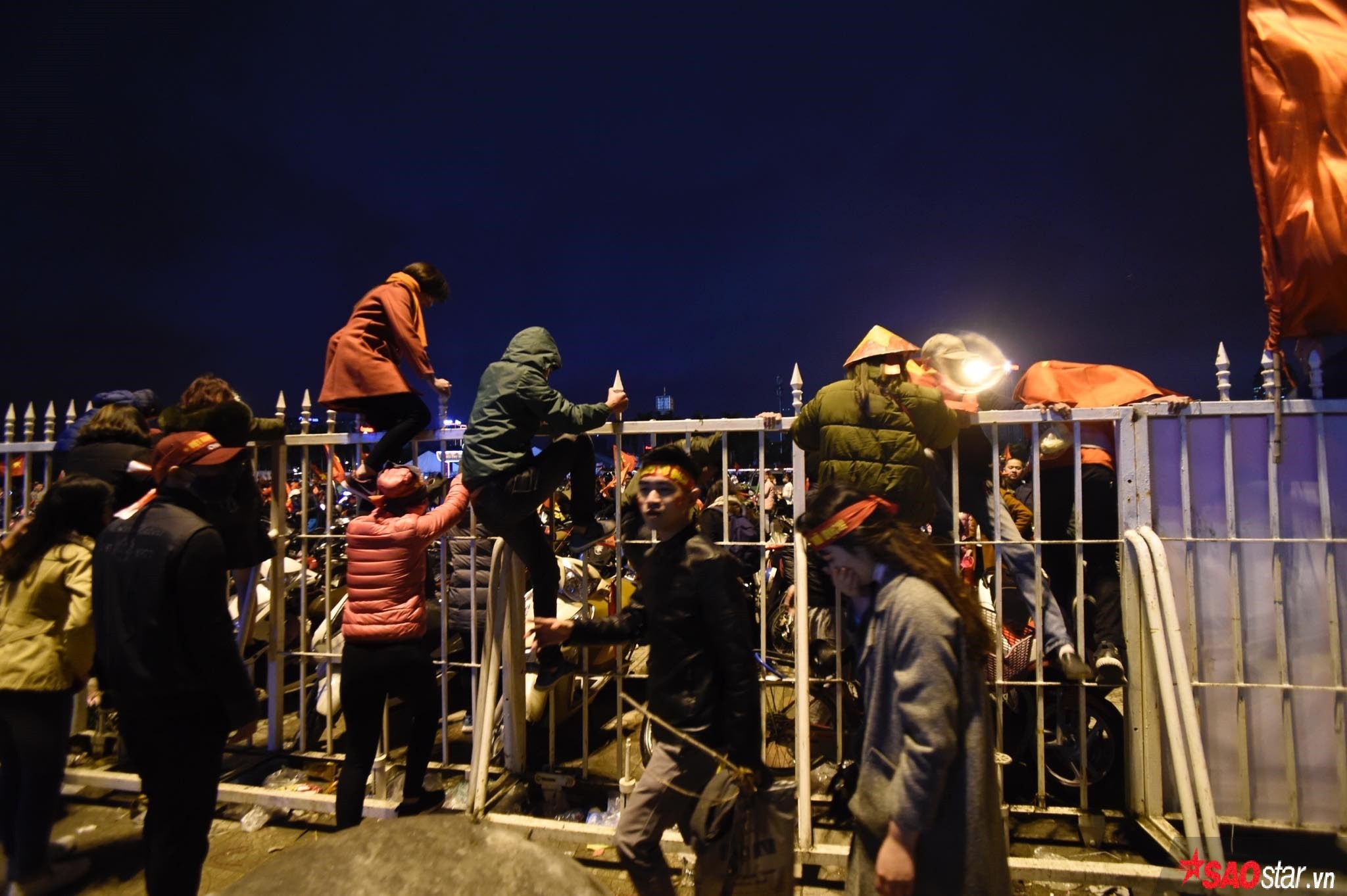Những thanh sắt nhọn khá nguy hiểm nhưng cũng không thể ngắn được các cổ động viên.