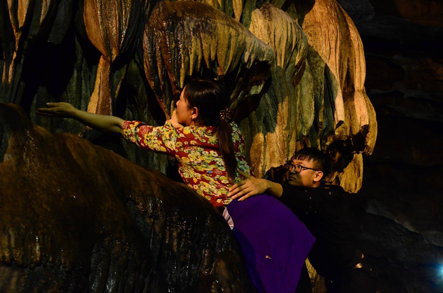 Lối đi xuống động Hương Tích, nơi từng được chúa Trịnh Sâm đặt tên là “Nam thiên đệ nhất động” (động đẹp nhất trời Nam) ken cứng người.