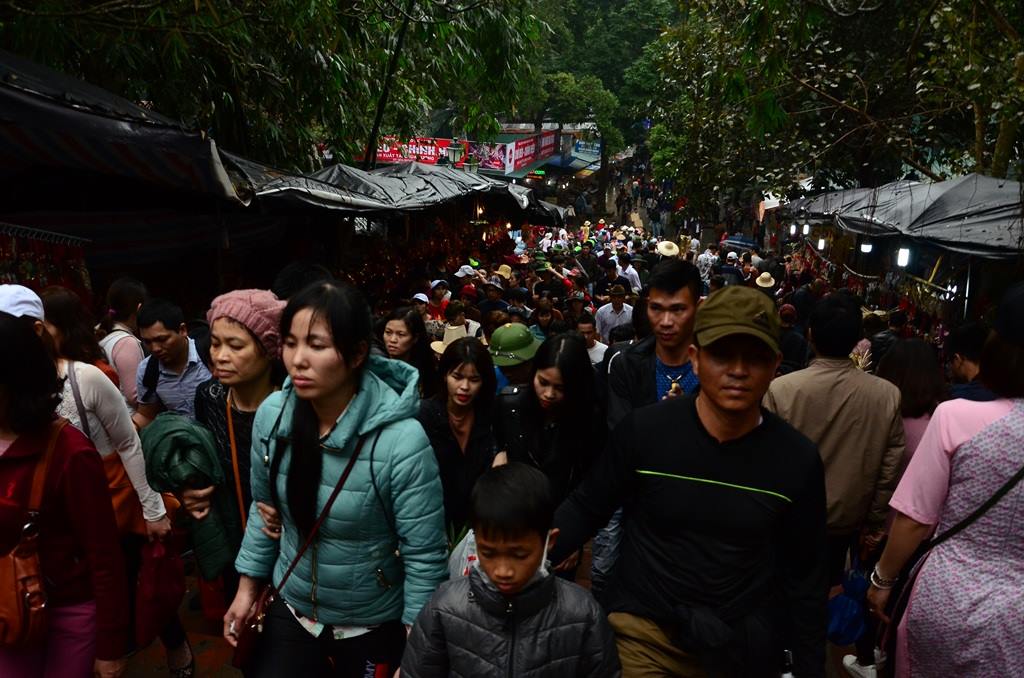 Biển người đổ về chùa Hương khiến các lối đi lại dọc khuôn viên chùa luôn đông nghẹt người.