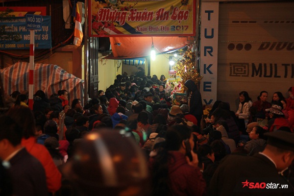 Để có một chỗ ngồi trong sân chùa, nhiều người có mặt từ 17 giờ, trước đại lễ vài giờ đồng hồ. Lượng người đi lễ quá đông ngồi ra tận đường Tây Sơn từ phố Vĩnh Hồ đến Ngã Tư Sở.