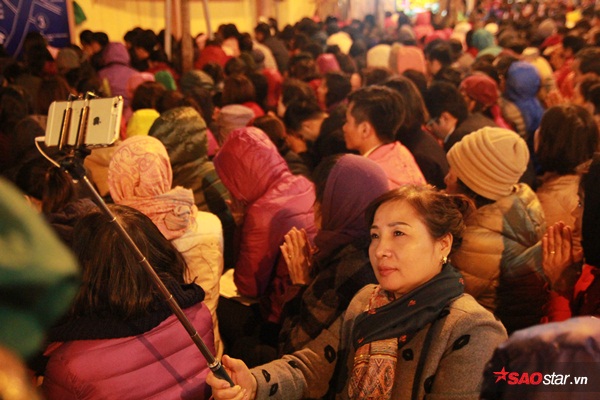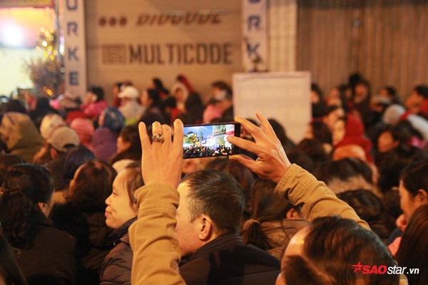 Thay vì chắp tay cầu nguyện có người dùng điện thoại ghi lại cảnh đông đúc của buổi lễ.