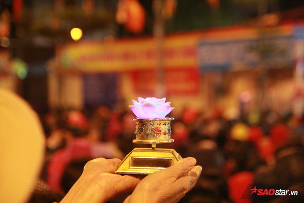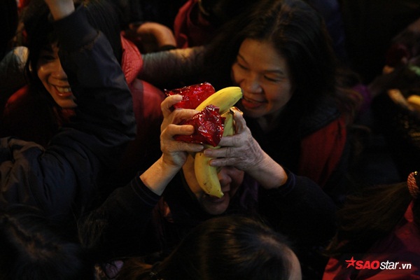 Thậm chí, có người phải để lộc trong chiếc ghế nhựa và dâng lên cao để tránh rơi vãi khi chen chân ra về.