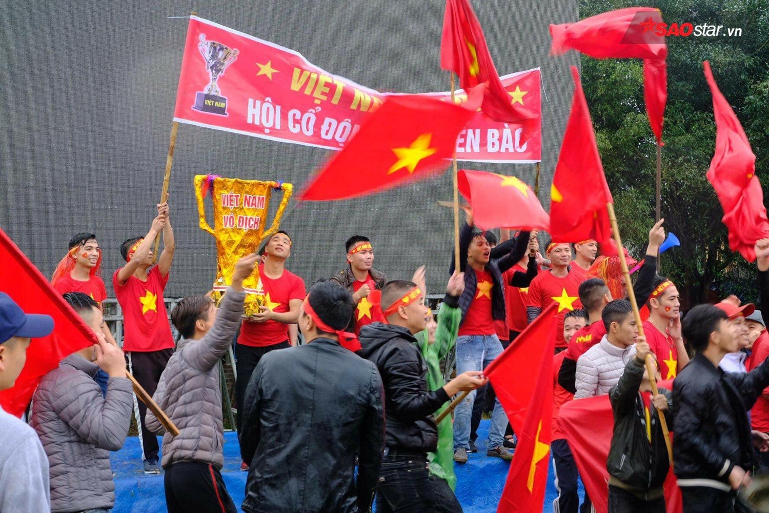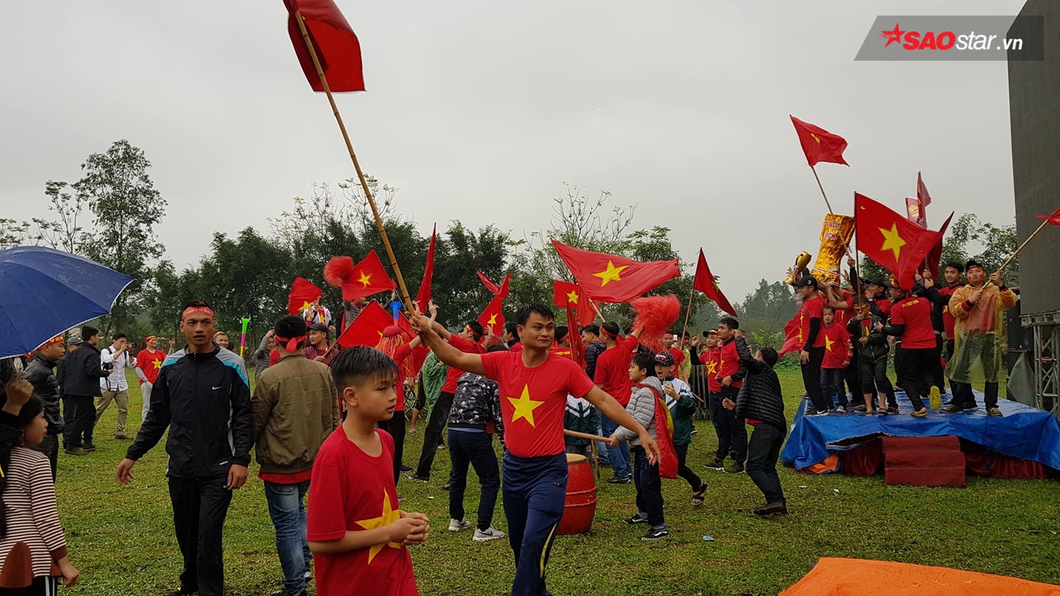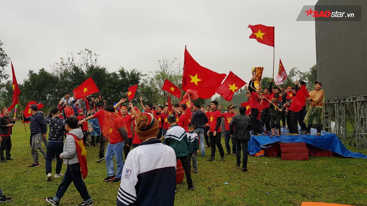 Trong không khí tự hào chiến thắng, mưa gió không thể nào làm người hâm mộ “hạ nhiệt”.