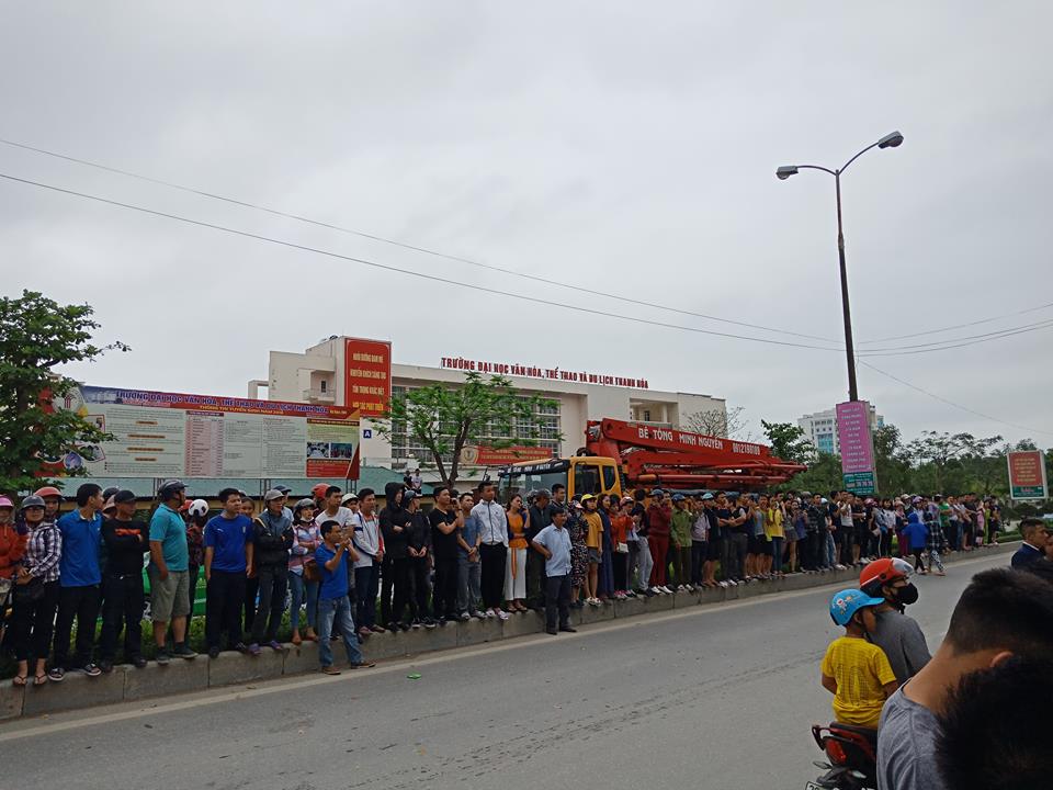 Thấy vậy hàng trăm người dân đi đường dừng lại theo dõi lực lượng chức năng làm việc khiến tuyến đường rơi vào cảnh ùn tắc. Do người dân hiếu kỳ tập trung đông nên lực lượng công an, CSGT TP Thanh Hóa vất vả để phân luồng giao thông.