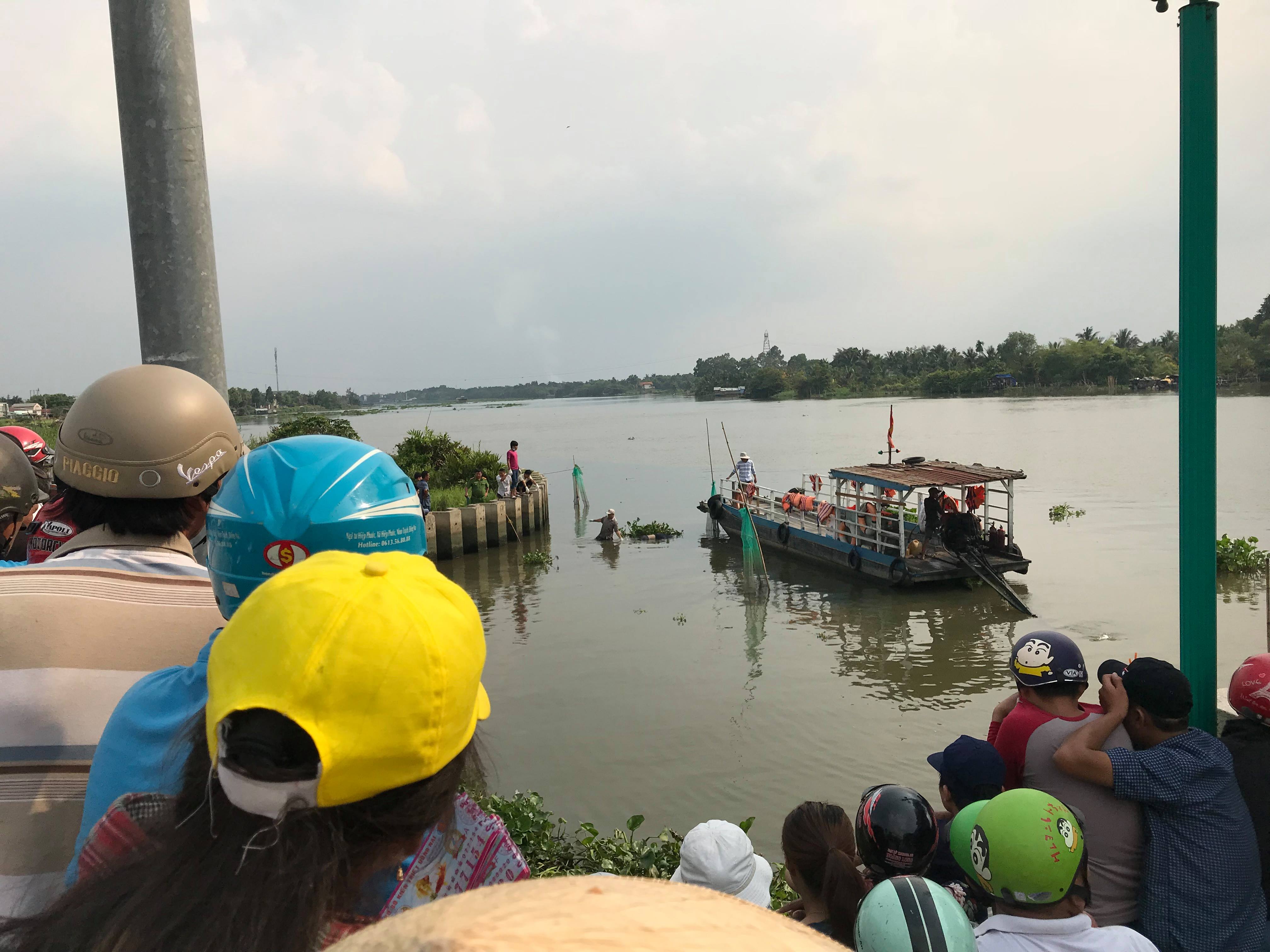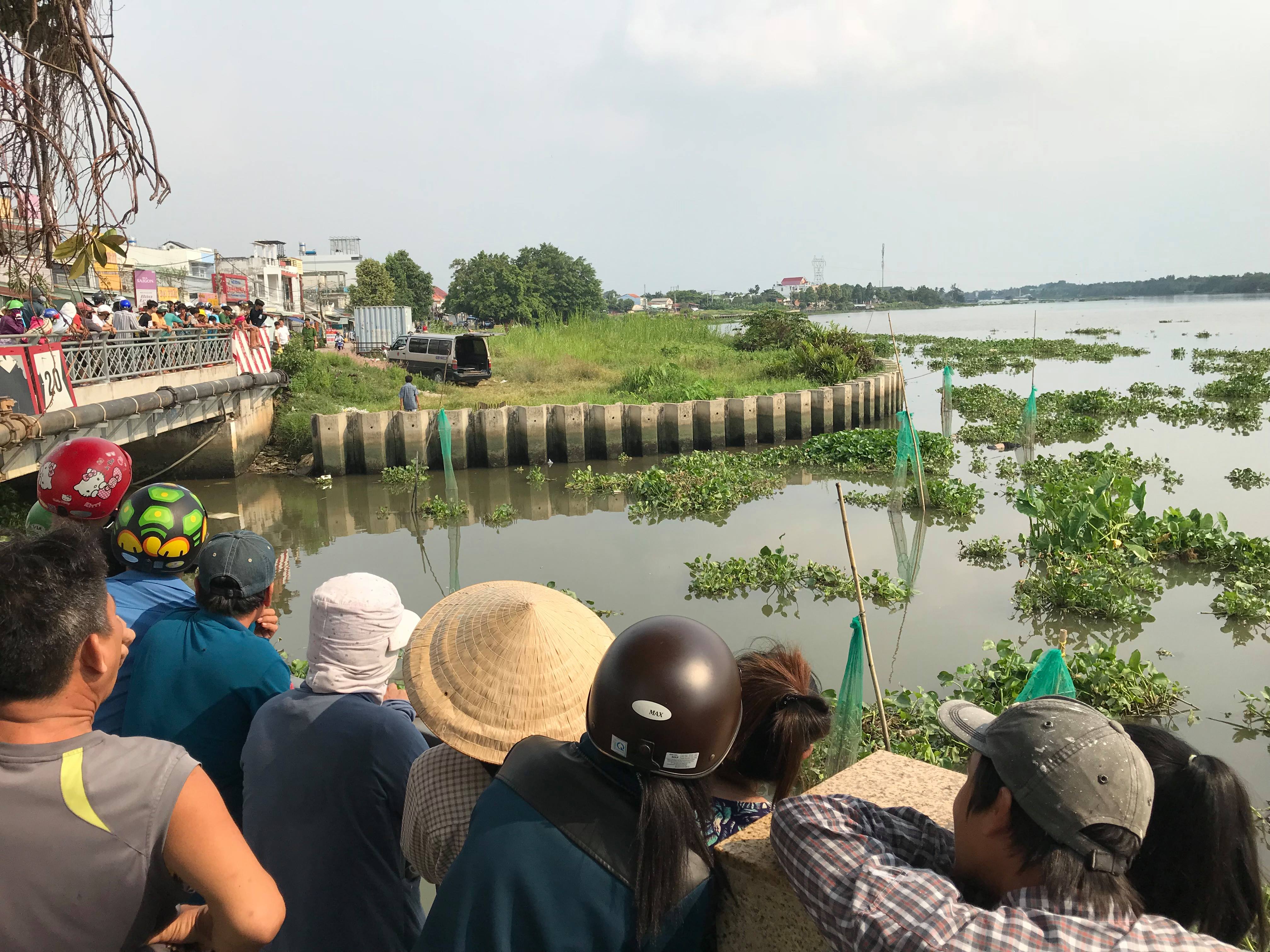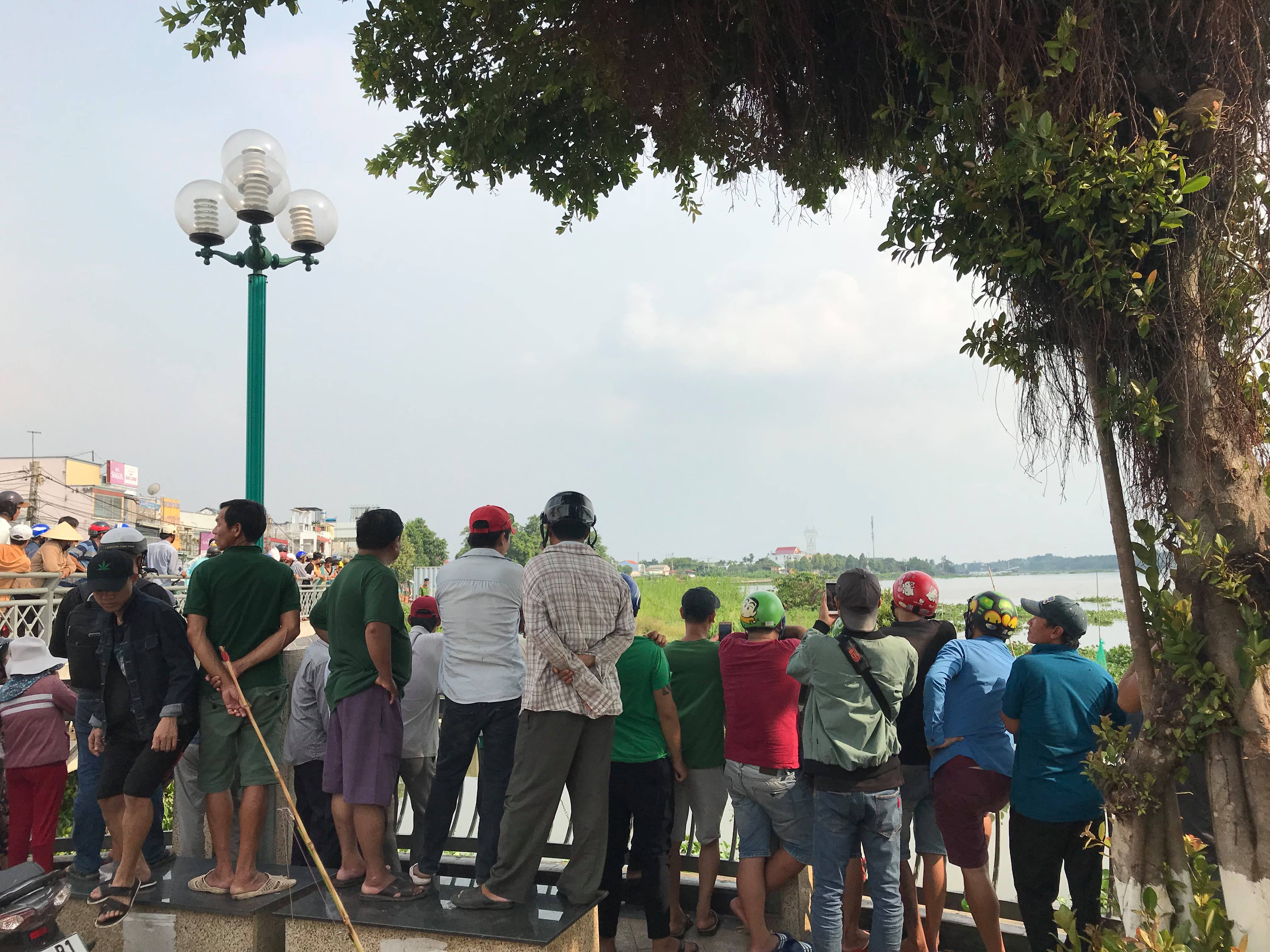 Người dân tập trung xem lực lượng chức năng vớt thi thể nạn nhân.