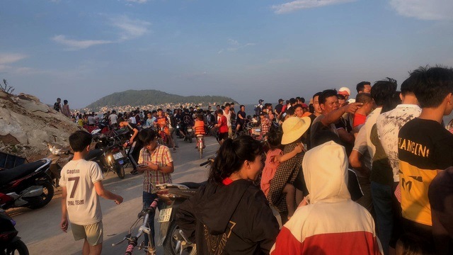 Rất đông người dân phường Quỳnh Phương có mặt tại bãi biển theo dõi công tác tìm kiếm.