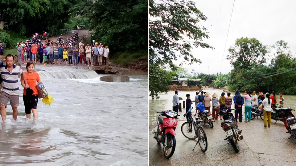 Con trai ông Dũng bám vào tảng đá sau đó lên được trên bờ, còn ông Dũng mất tích.