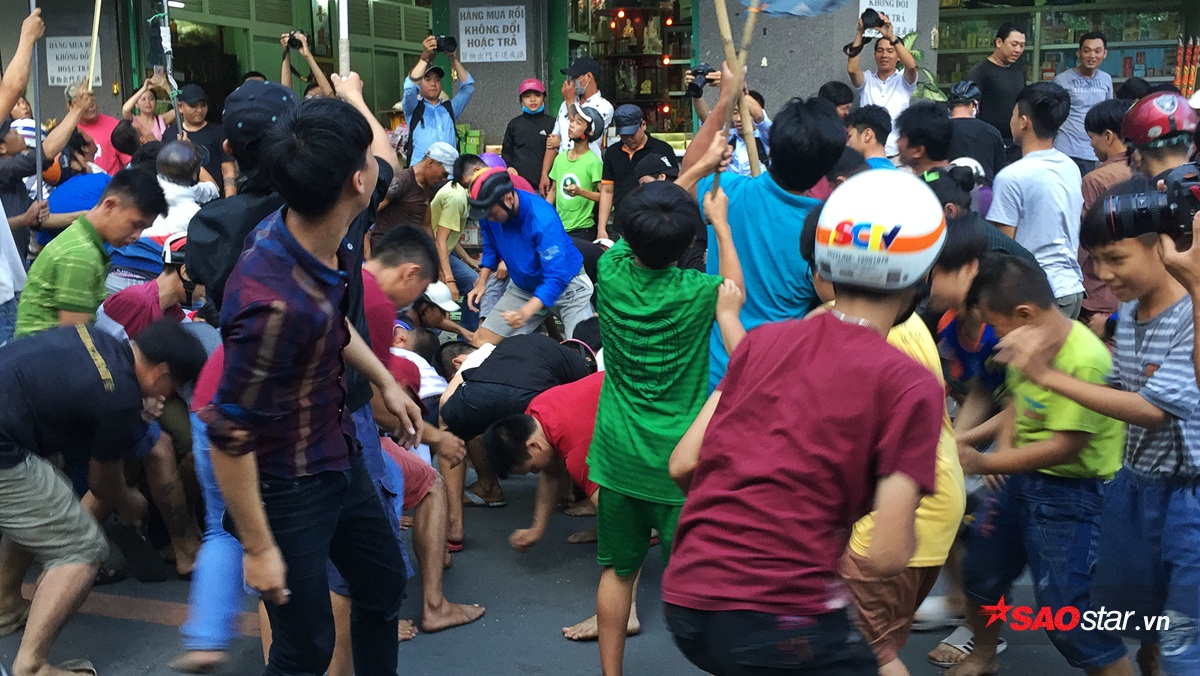 Hàng trăm người tranh nhau giật cô hồn gây náo loạn khu phố.