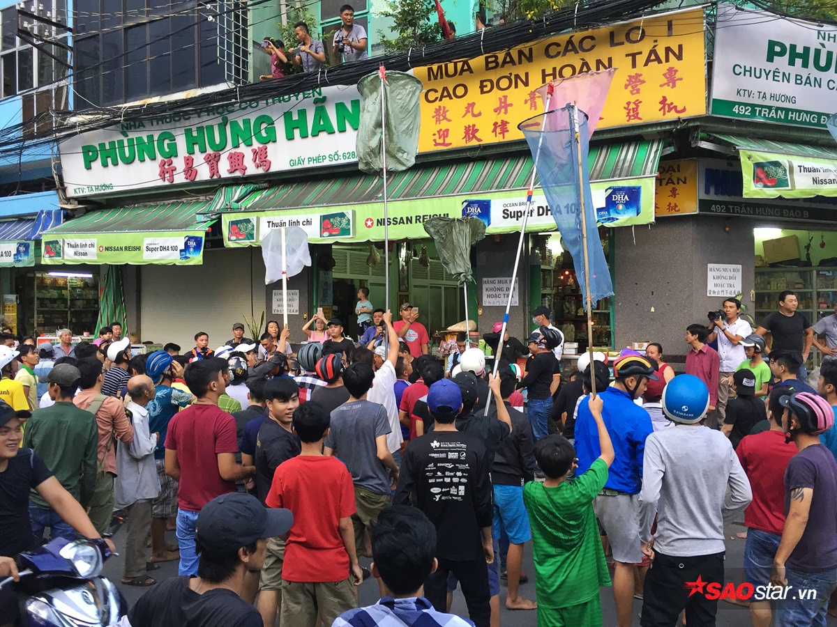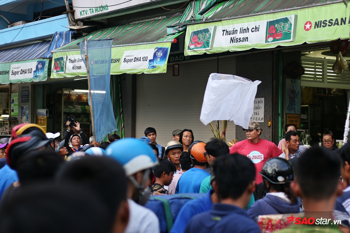Dẫu rằng 16h30 mới bắt đầu lễ cúng và 17h mới bắt đầu rãi tiền nhưng từ 15h30 hàng chục người dân sống xung quanh khu vực Chợ Lớn đã náo nức vây quanh hiệu thuốc ở vòng xoay Phùng Hưng - Trần Hưng Đạo để chuẩn bị giật cô hồn và nhận quà từ thiện.