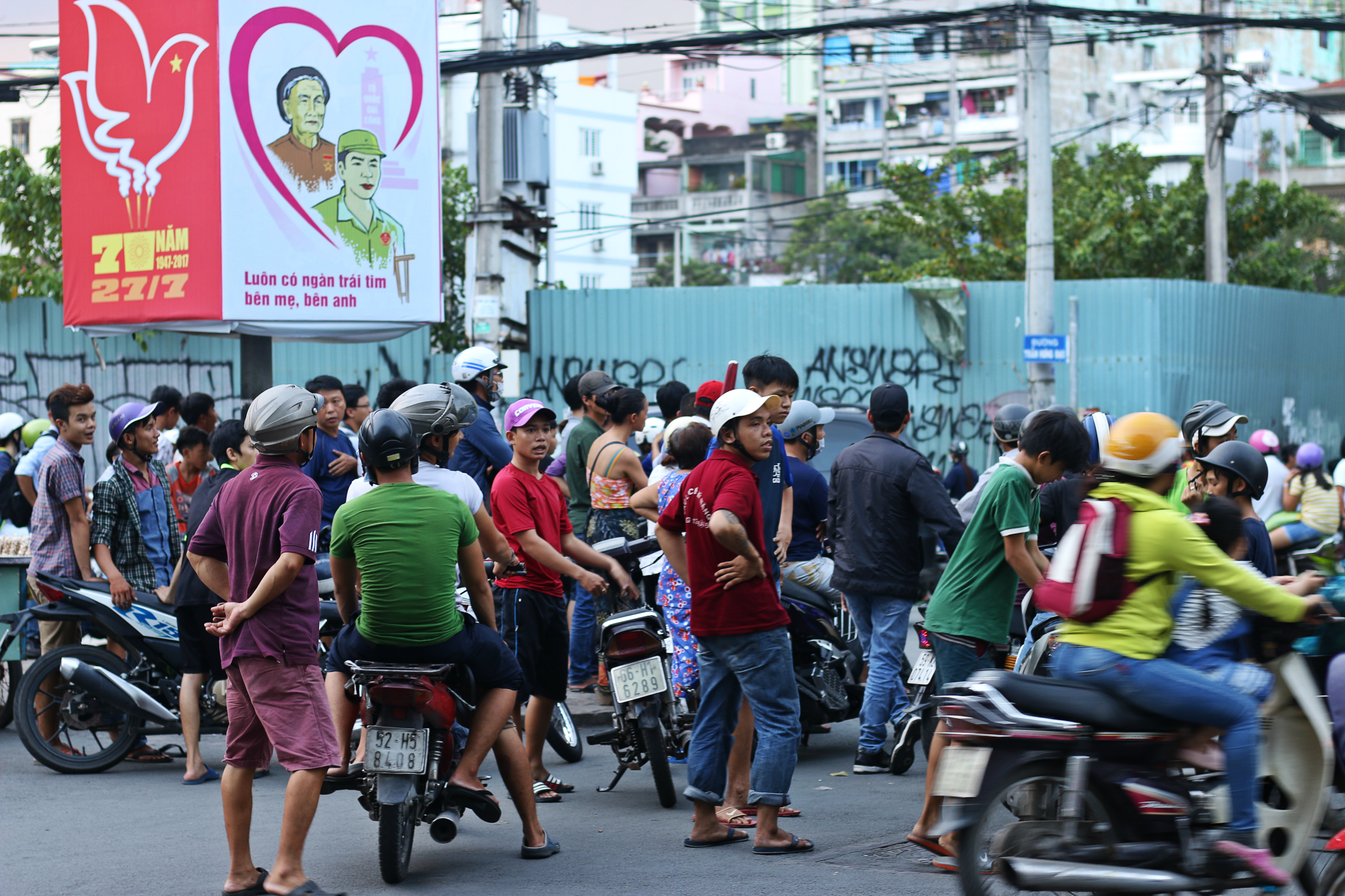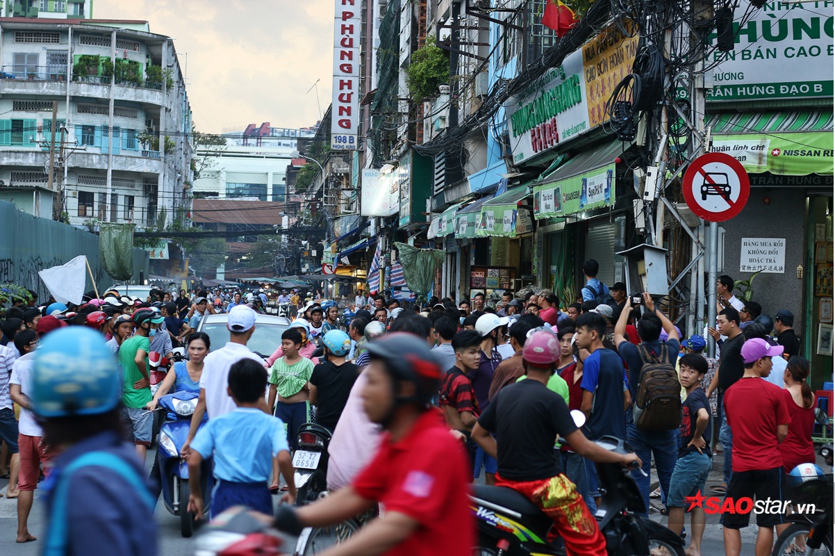 Đoàn người tranh nhau nhặt tiền (tượng trưng cho may mắn) tràn kín cả góc đường Phùng Hưng, tình trạng giao thông gần như ùn ứ vì chẳng ai chịu rời khỏi vị trí. Lực lượng bảo vệ dân phòng và công an khu vực nhanh chóng có mặt để đảm bảo trật tự, an toàn.