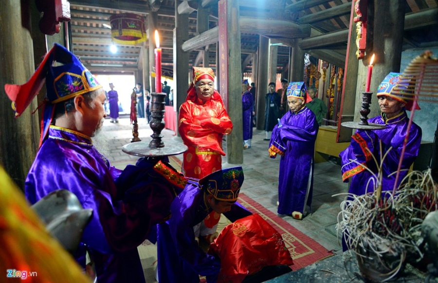 Sau khi có mặt tại đền chính, ba Bụt gồm một Bụt chính và hai Bụt phụ được người dân “hộ tống”, đưa đi tắm ở giếng làng.