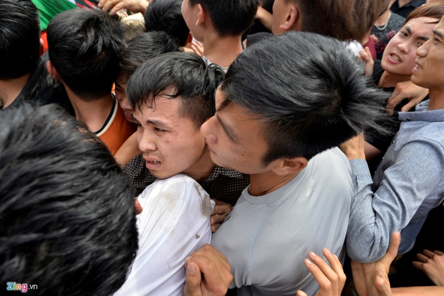 Hàng trăm thanh niên xô đẩy nhau, tạo nên cảnh tượng khá ngột ngạt.