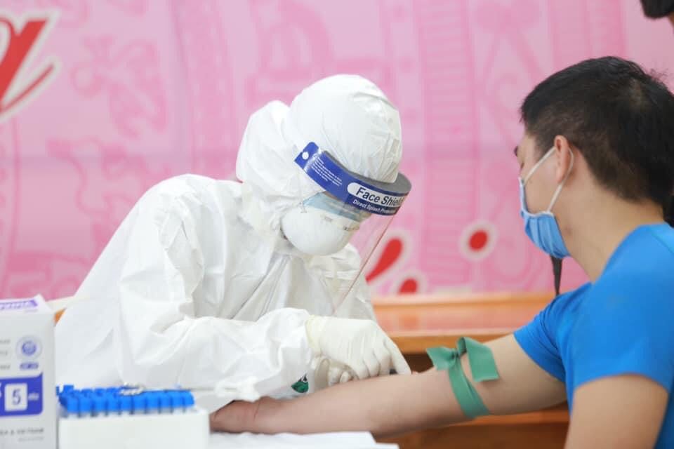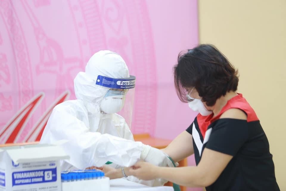 Sáng 18/4, Trung tâm Y tế quận Ba Đình (Hà Nội) đã tổ chức lấy mẫu, test nhanh sàng lọc COVID-19 cho hàng trăm tiểu thương và những lao động tại chợ đầu mối Long Biên.