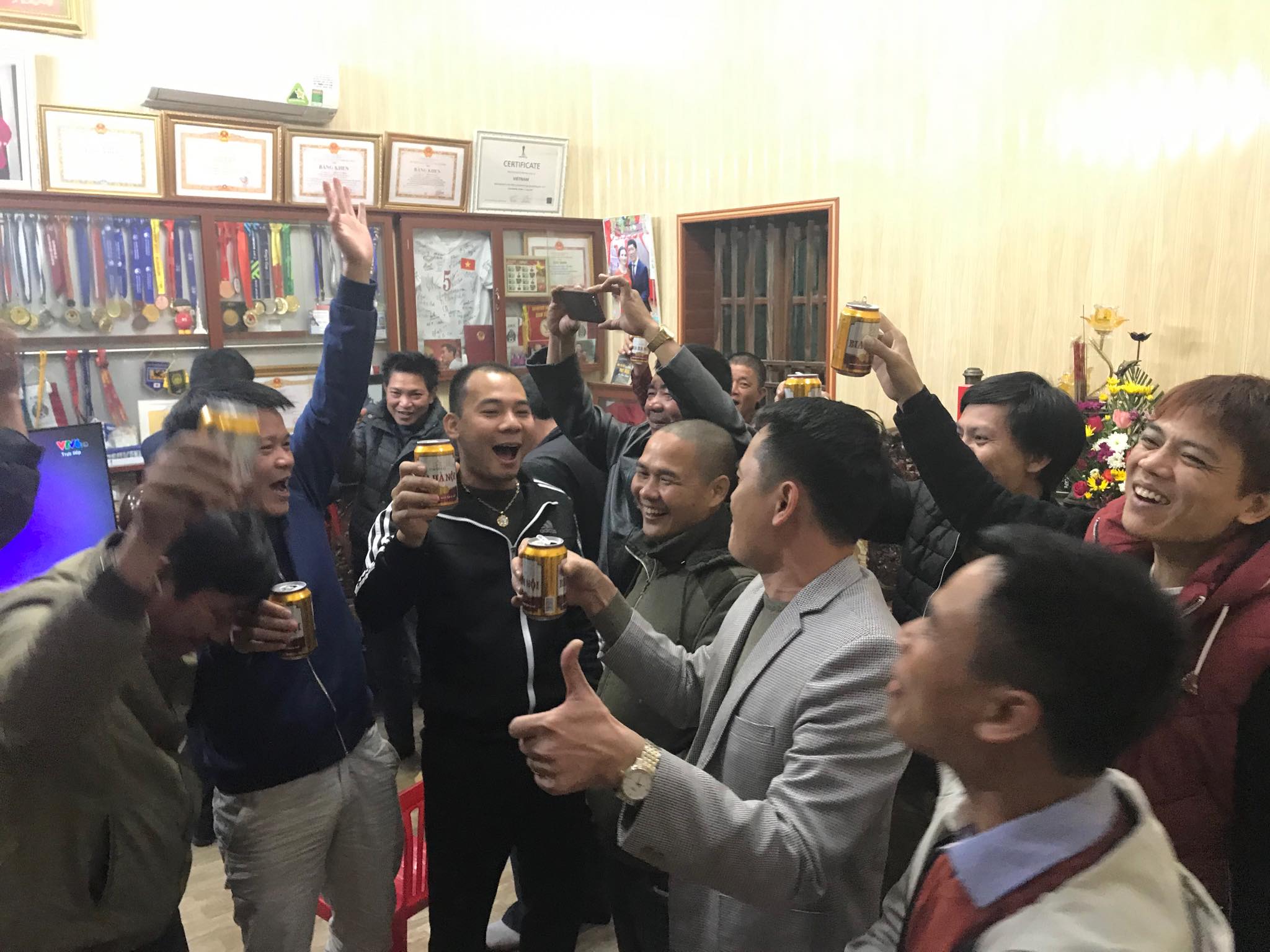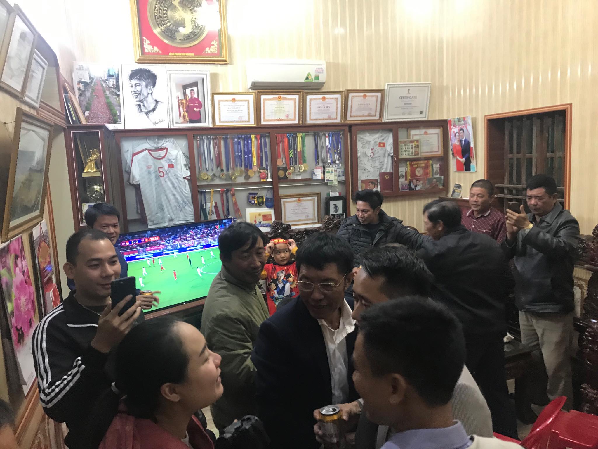Tại nhà cầu thủ Văn Hậu, mọi người cũng đang hòa vào niềm vui chiến thắng