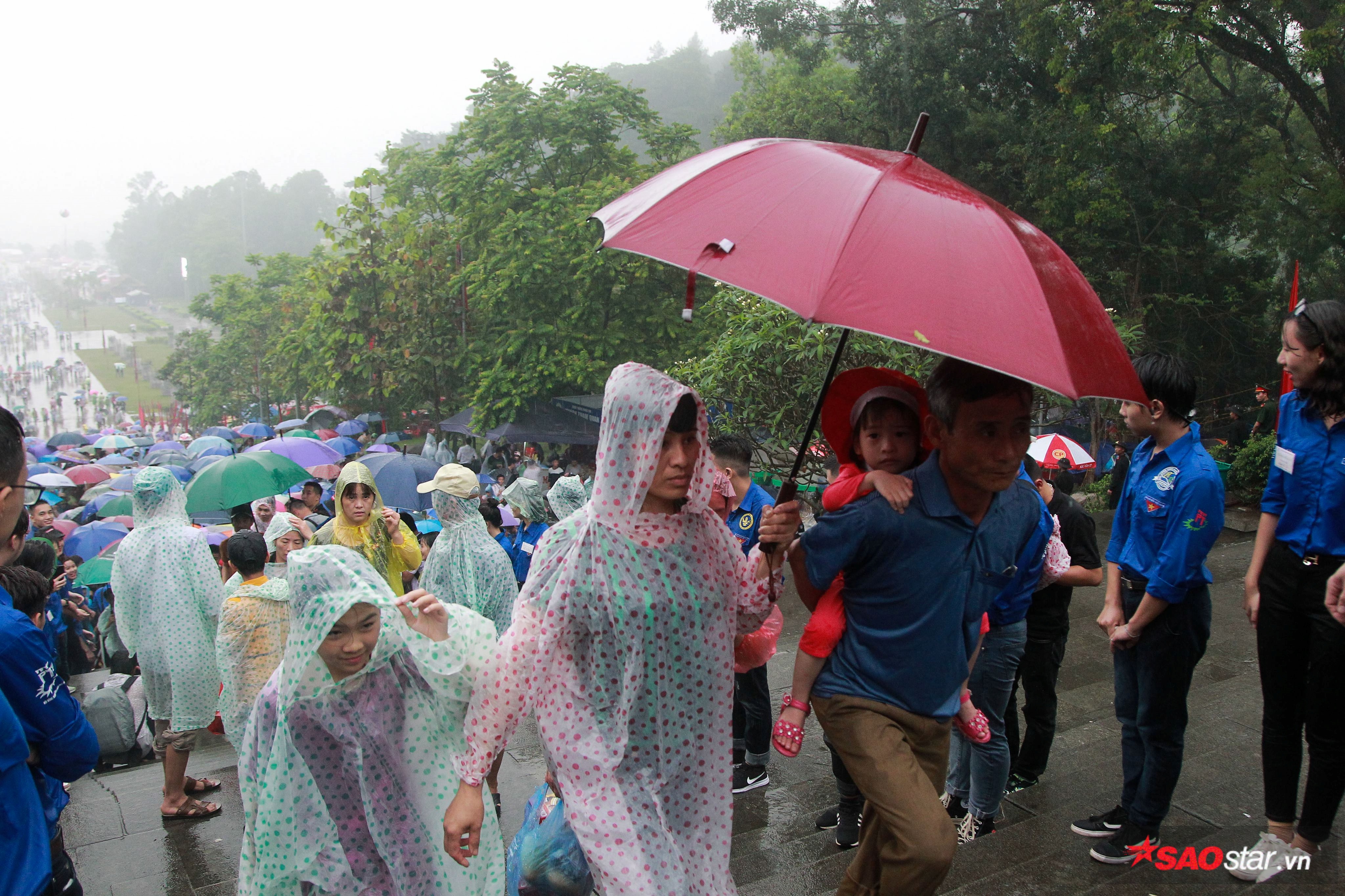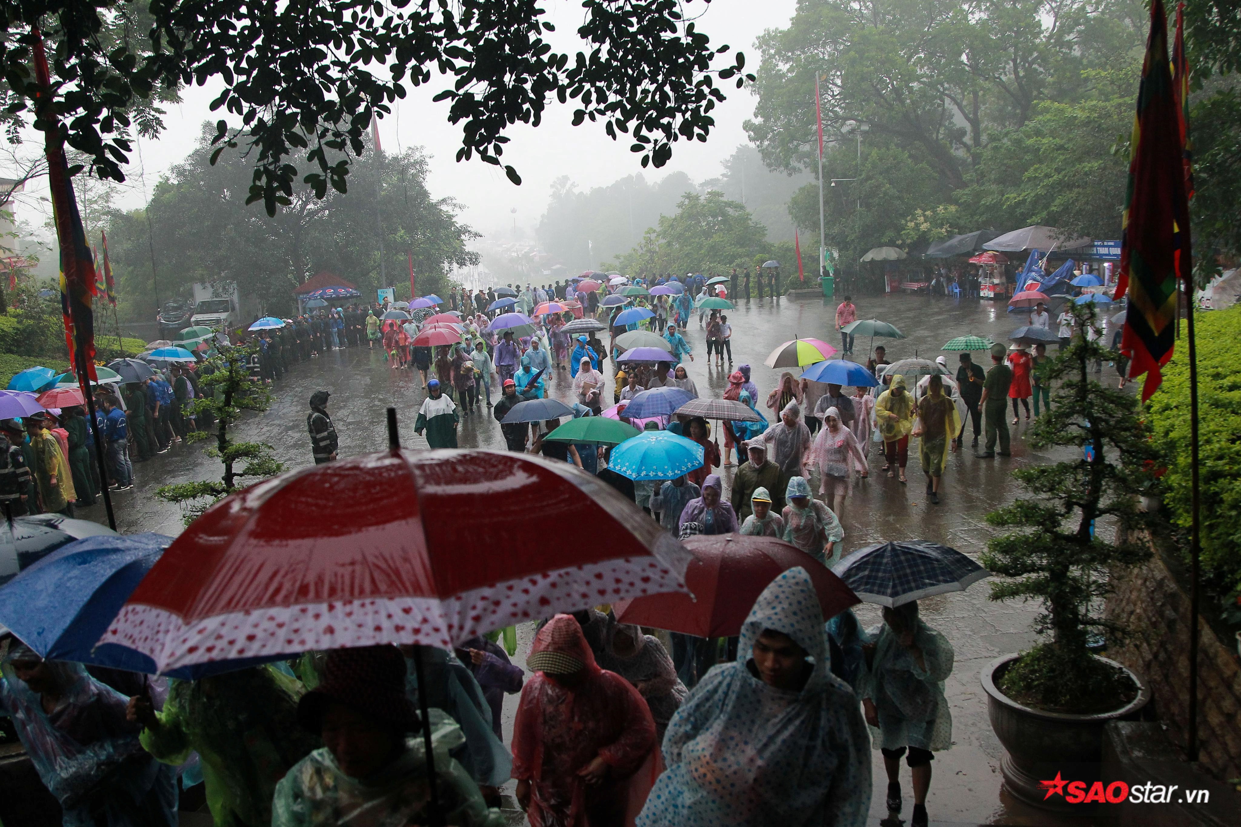 Du khách thập phương đội mưa về Đền Hùng dâng hương tưởng nhớ công lao các vua Hùng.