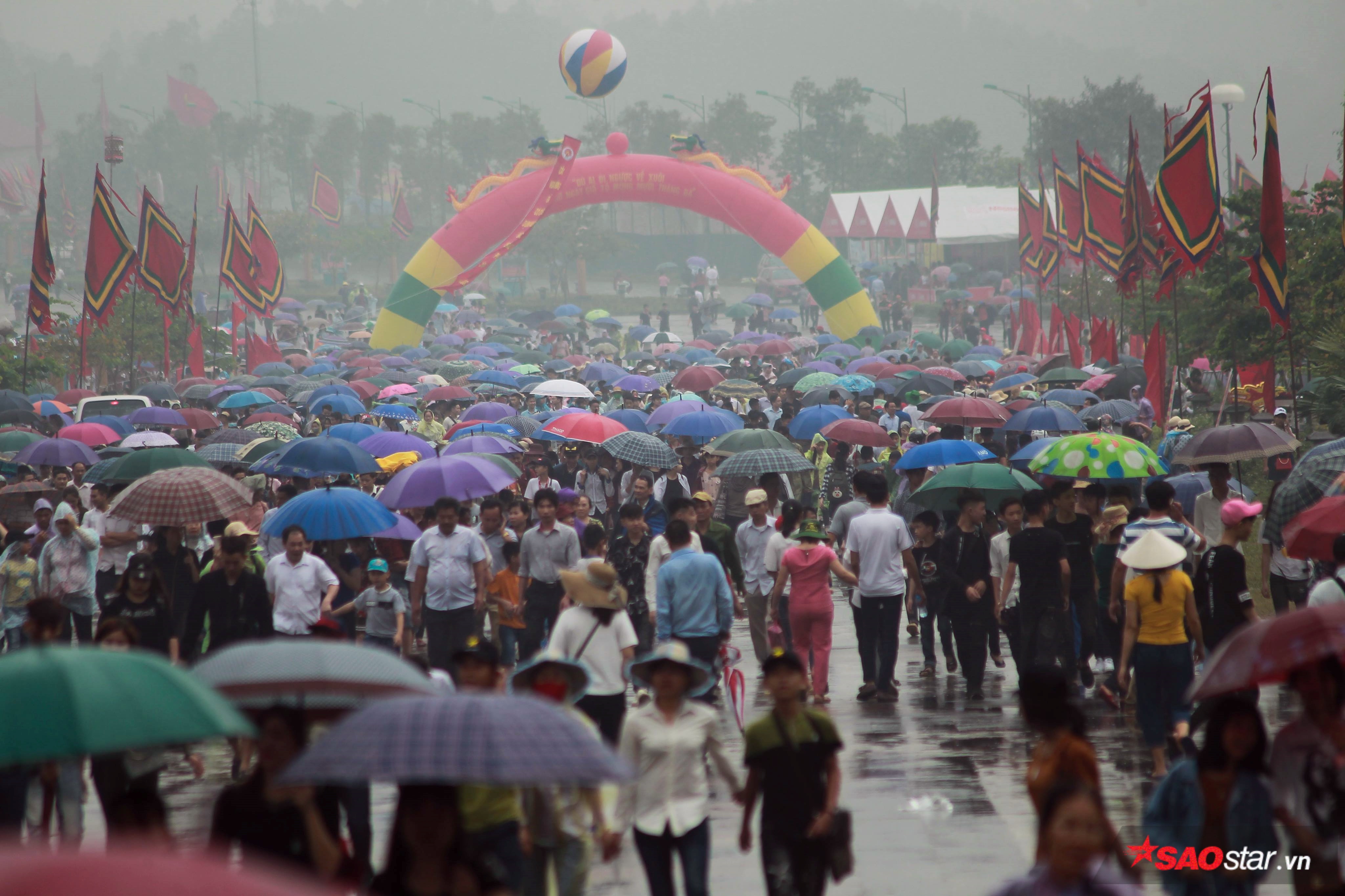 Bất chấp mưa gió, mọi người đều vui vẻ đến Lễ hội Đền Hùng.