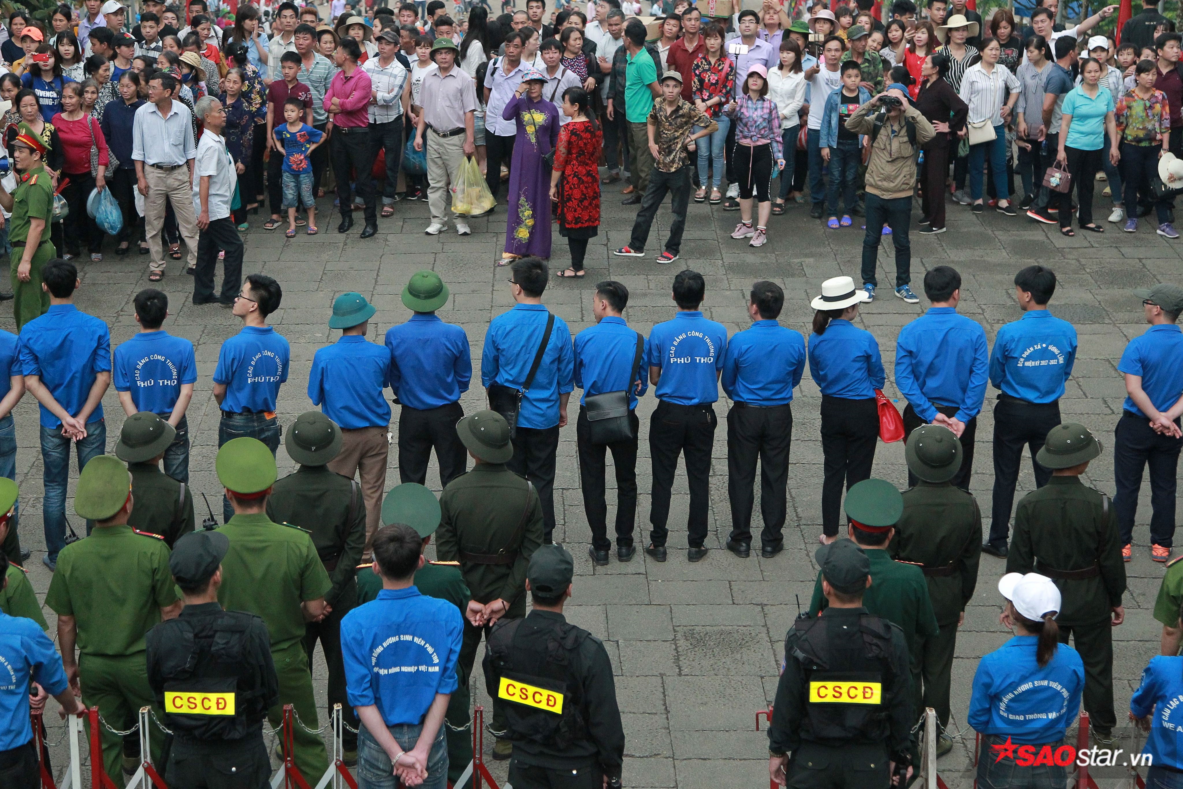 Tình nguyện viên có mặt từ sớm để giúp du khách thập phương đảm bảo an ninh.