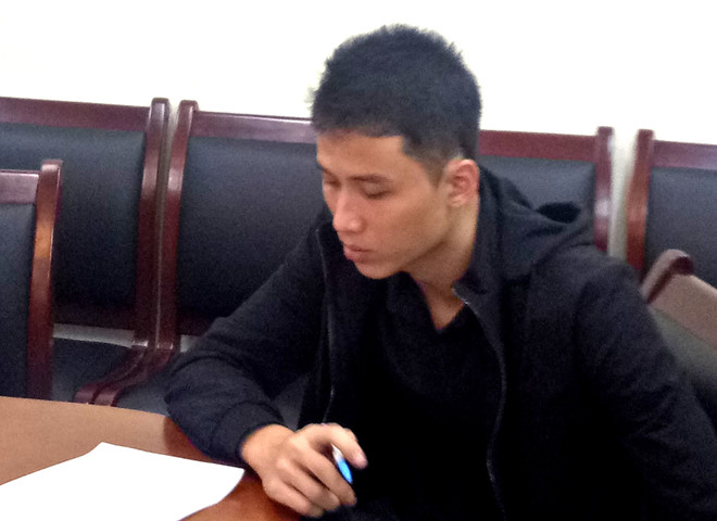 Phạm Thanh Tùng tại cơ quan điều tra. Ảnh An ninh thủ đô.