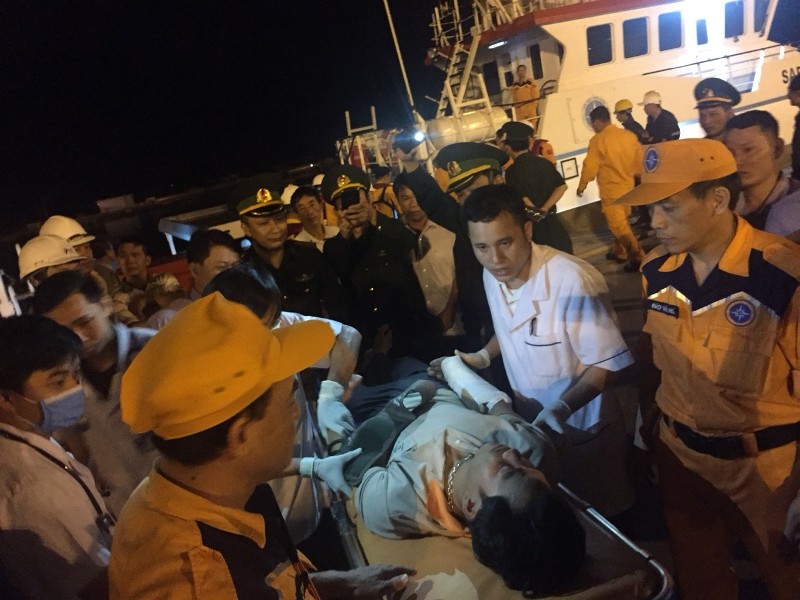 Chiều 5/4, thông tin từ Trung tâm Y tế thị xã Hoàng Mai (Nghệ An), vẫn đang cấp cứu cho 5 ngư dân sau vụ chìm tàu, riêng thuyền viên Phạm Văn Việt bị chấn thương vùng xương sống phải đưa đi Hà Nội, còn những người khác đã được xuất viện trở về.