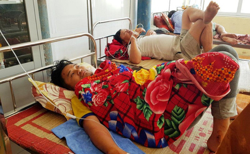Các thuyền viên được chữa trị tại Trung tâm Y tế thị xã Hoàng Mai