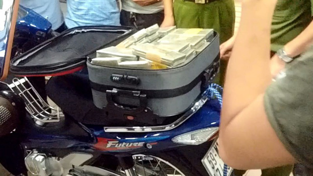 Chiếc xe máy vận chuyển số lượng lớn ma túy về quận Tân Phú bị bắt. Ảnh: NT