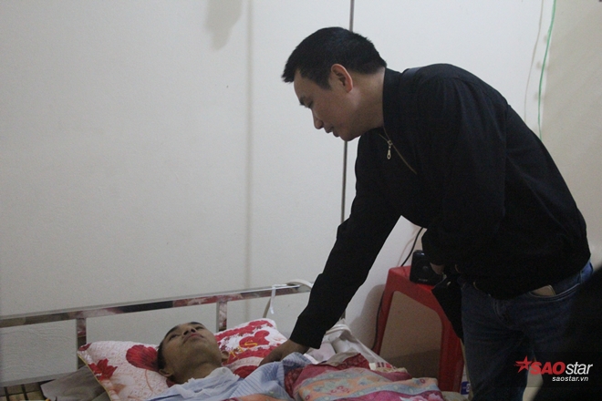 Nhà báo Ngô Bá Lục đến động viên Nguyễn Khắc Thái, chàng bác sĩ trẻ gặp nạn trên đường đi tình nguyện.