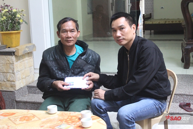 Chúng tôi trao tặng gia đình Thái 3 cái phong bì trực tiếp của tập thể cán bộ nhân viên Saostar, của các em học sinh lớp 9A1trường THCS Lương Yên và 1 salon tóc tại Hà Nội. Tiếp theo, nhà báo Ngô Bá Lục phải đi nhờ máy tính của một gia đình gần đó để chuyển tiền ủng hộ của các nhà hảo tâm vào tài khoản của bác Ngó. Giao dịch thành công, bác Ngó rất xúc động và bắt tay cảm ơn từng người.